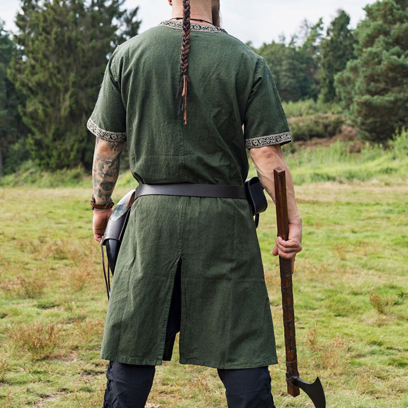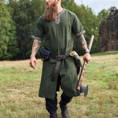 Men's Viking Embroidered Linen Blend Short Sleeve Tunic