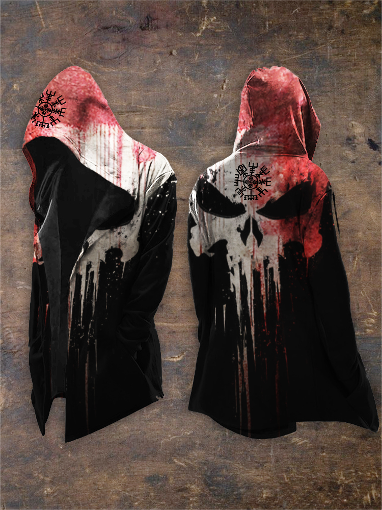 Men's Viking Vegvisir Bloody Skull Contrast Hooded Coat