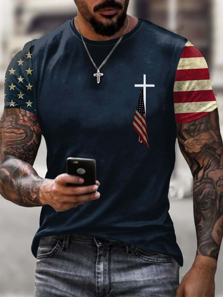 Men's Vintage Flag Cross Print Crew Neck T-Shirt