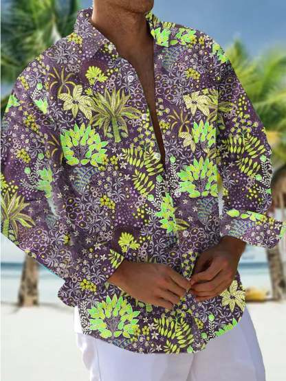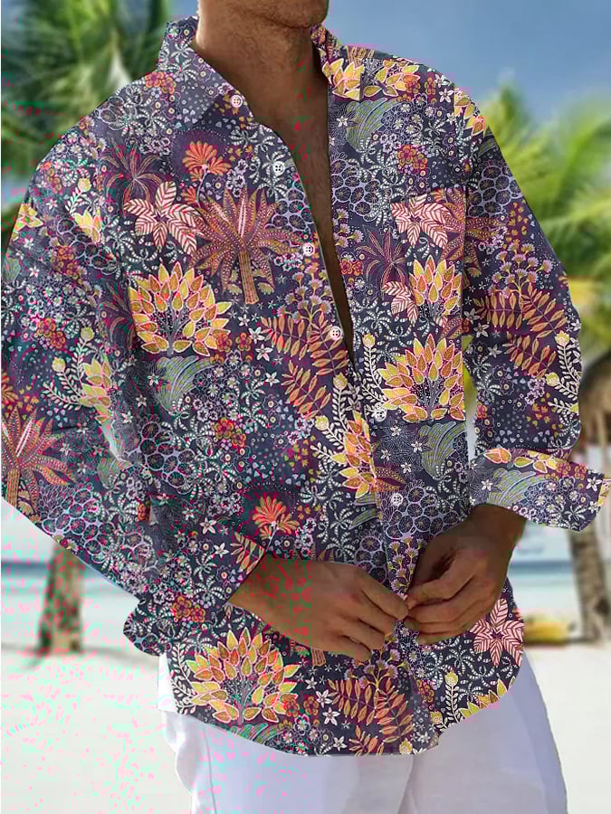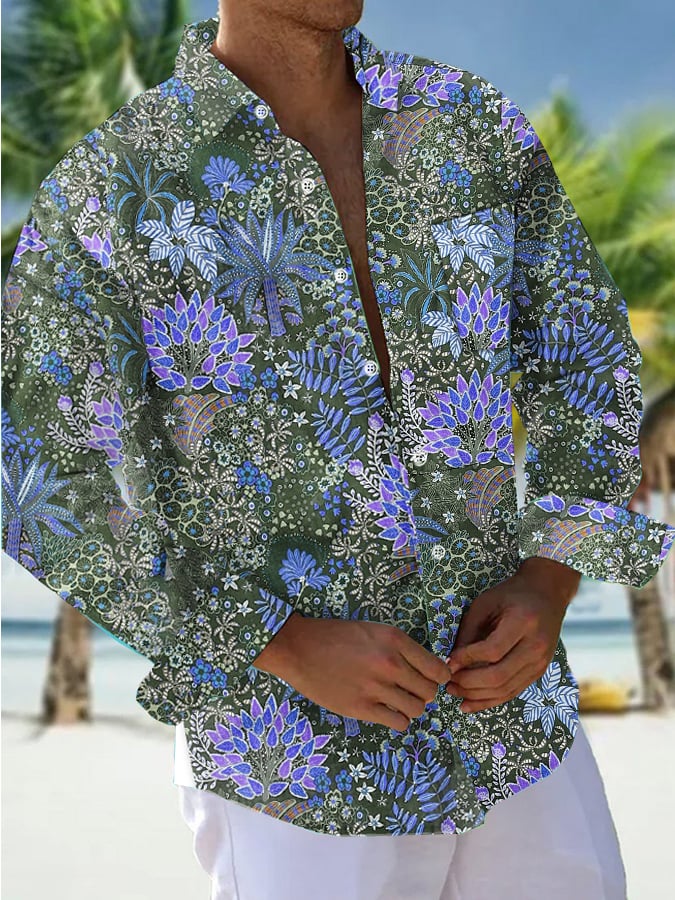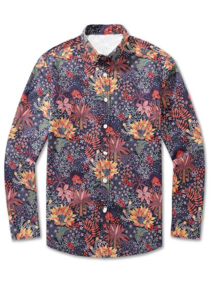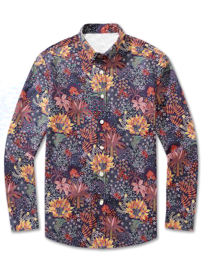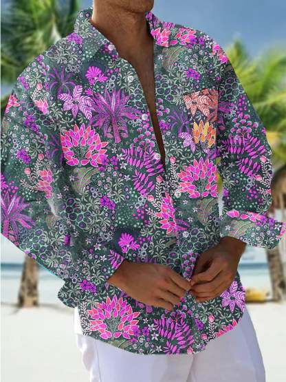 Men's Vintage Floral Pocket Long Sleeve Shirt