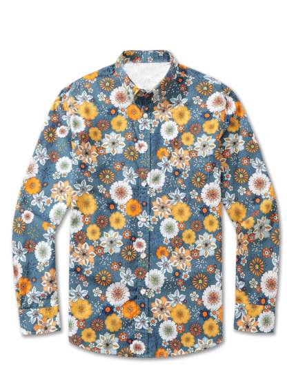 Men's Vintage Floral Pocket Long Sleeve Shirt