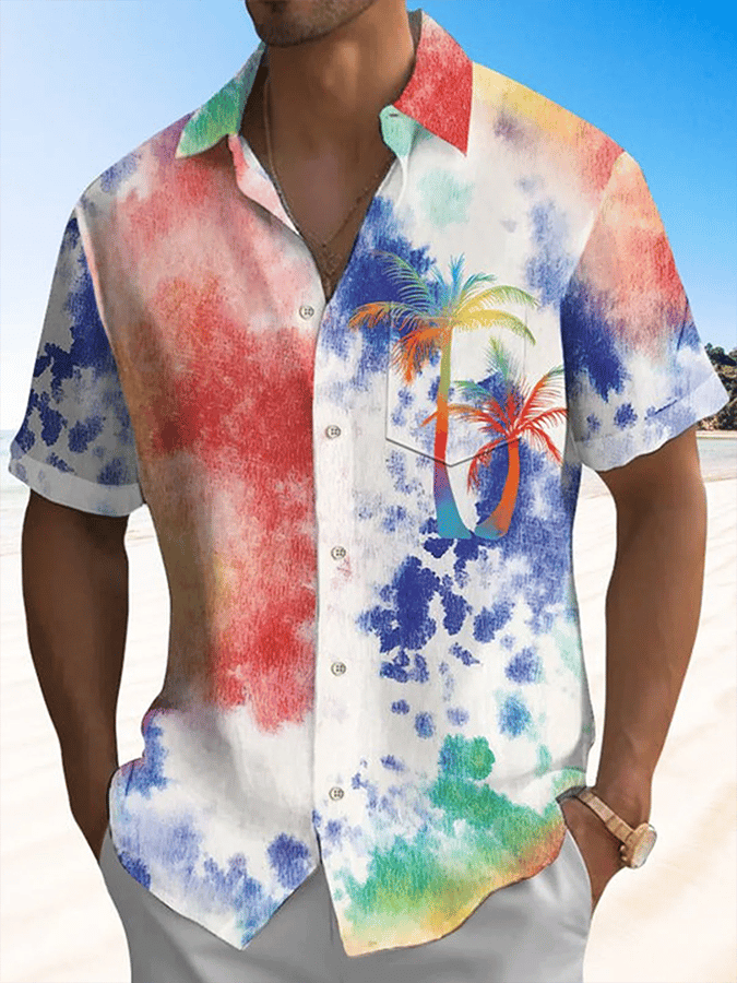 Men's Vintage Hawaiian Totem Print Short Sleeve Pockets Shirt