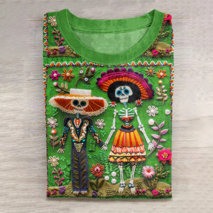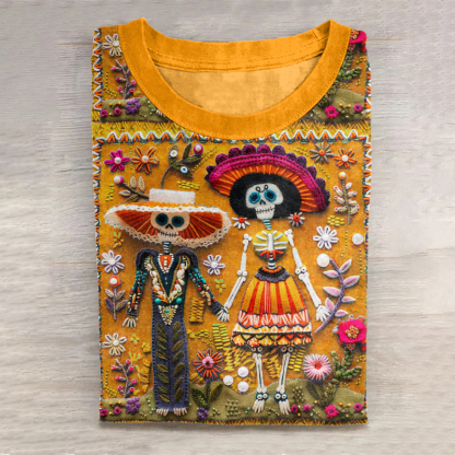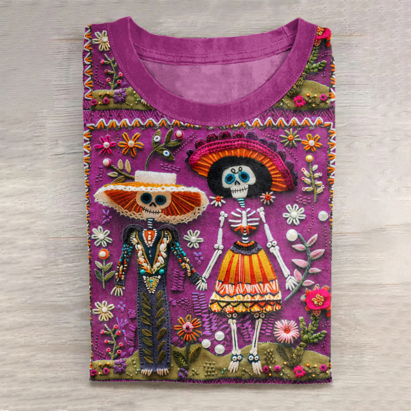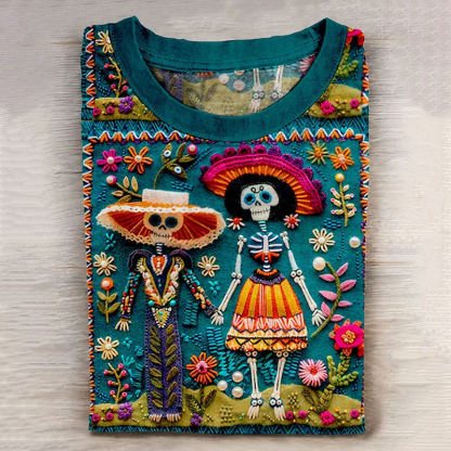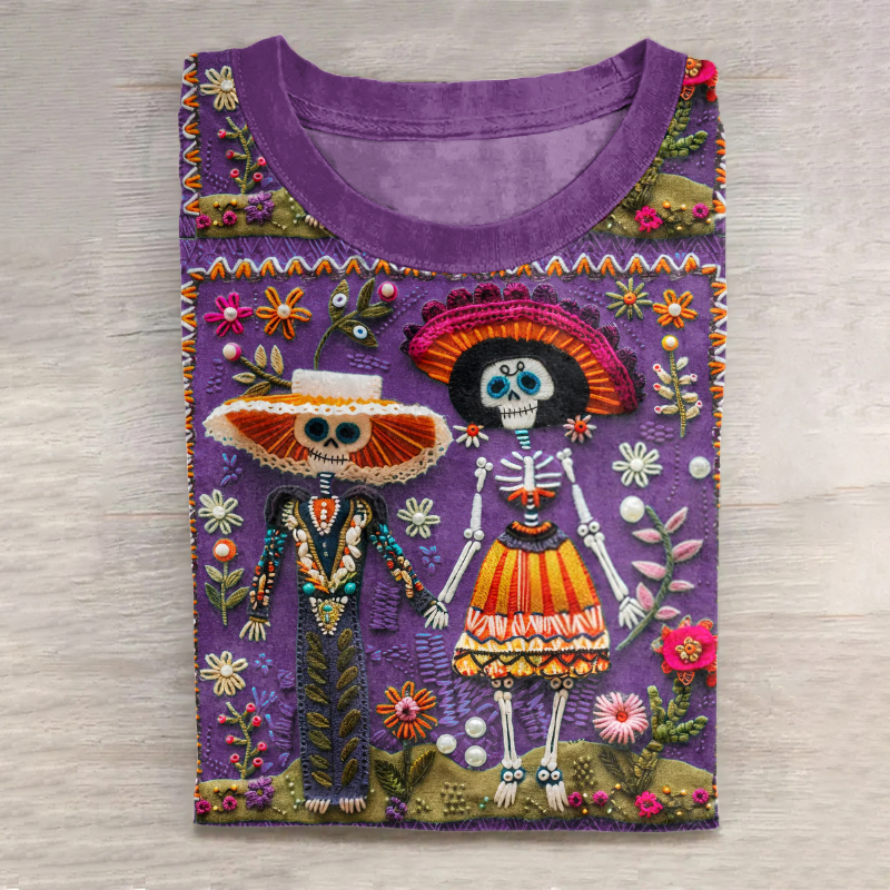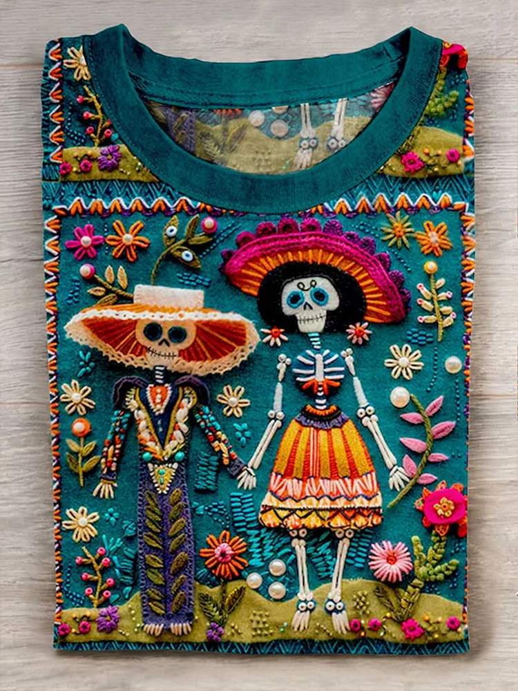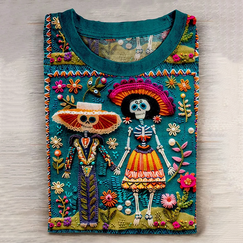 Mexican Catrina Day Of The Dead Sugar Skeleton Inspired Cotton Graphic T-Shirt