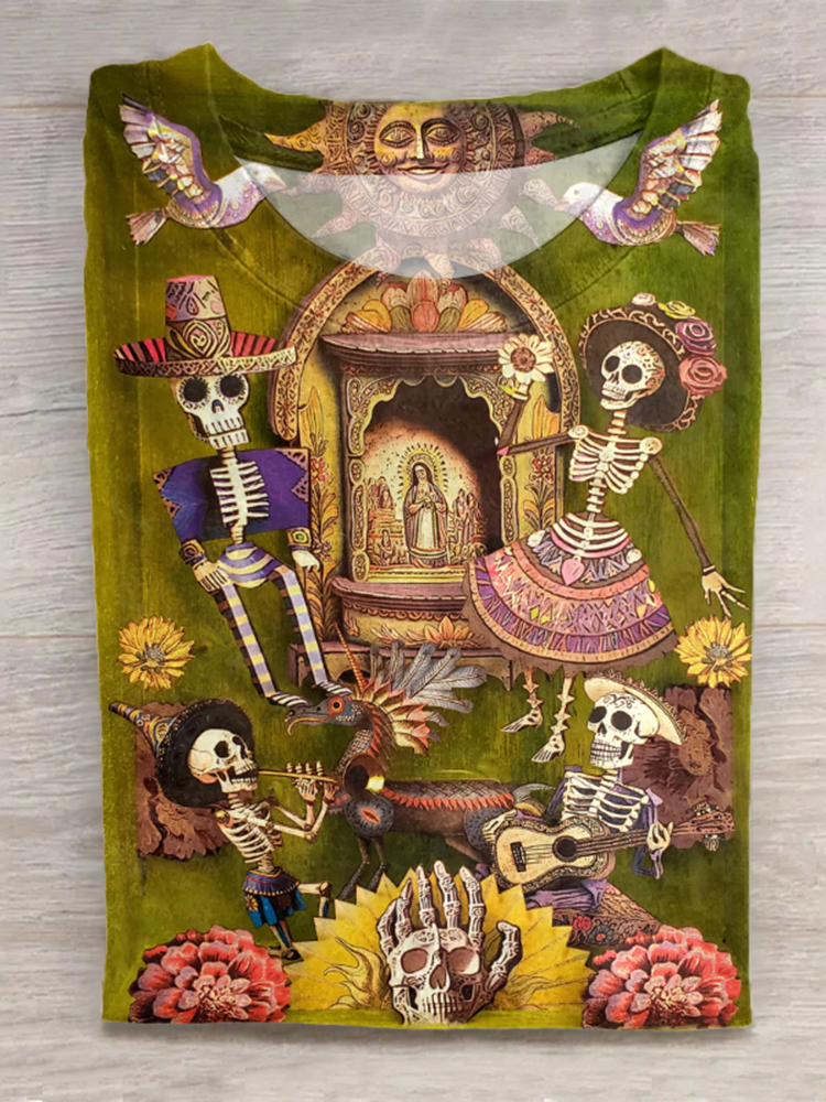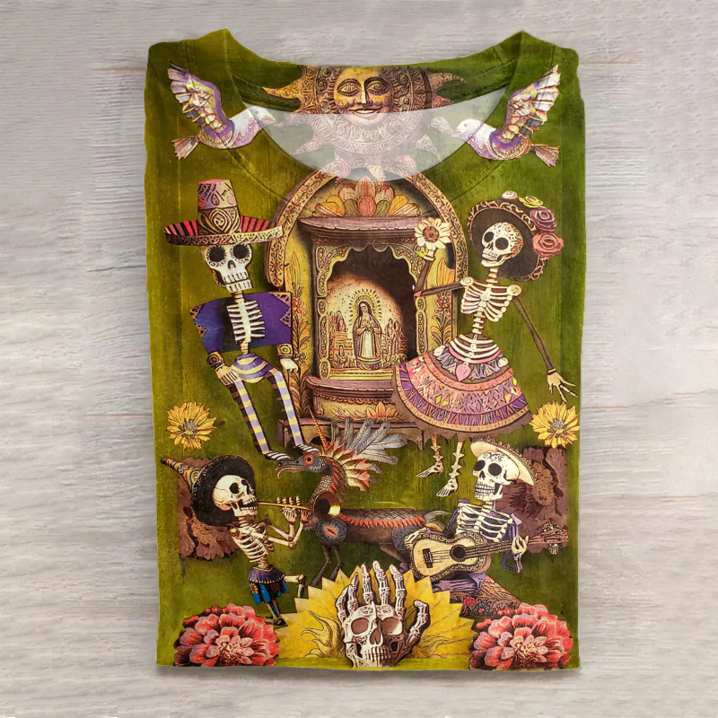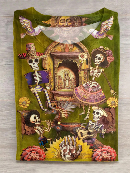 Mexican Day Of The Dead Inspired Cotton Graphic T-Shirt
