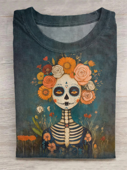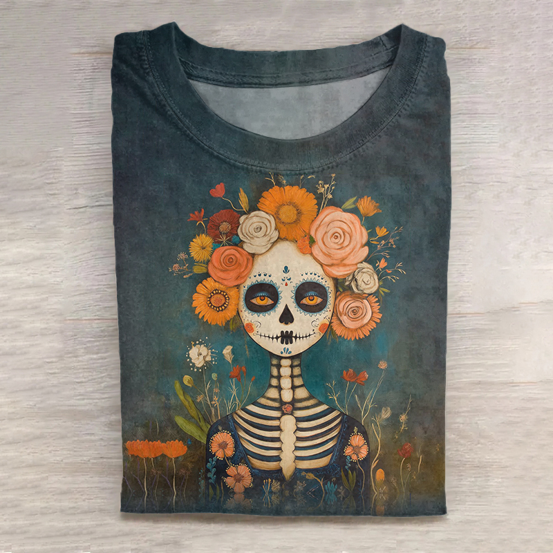 Mexican Day Of The Dead Printed Short Sleeved T-Shirt