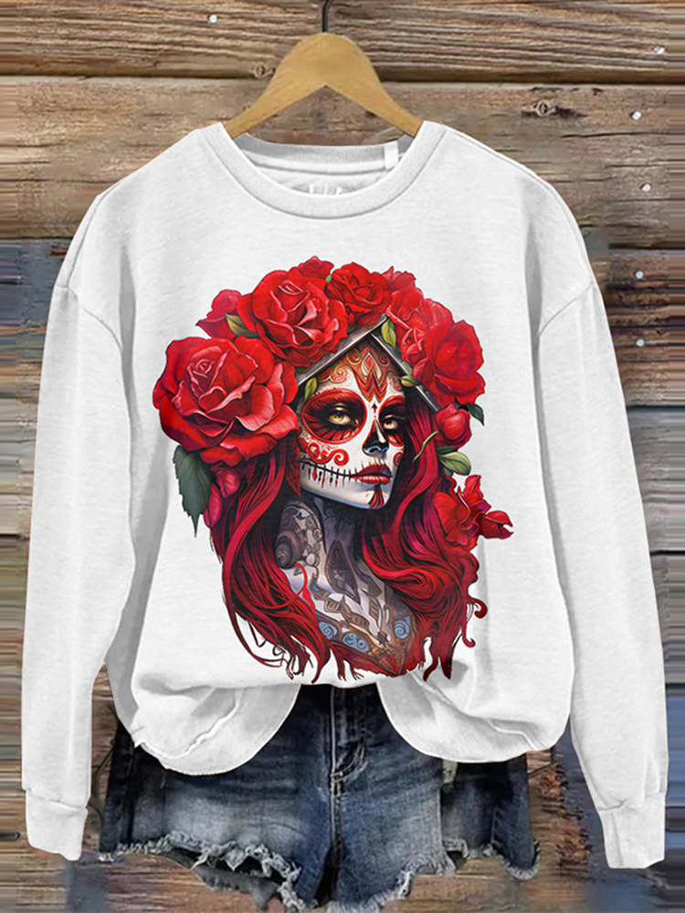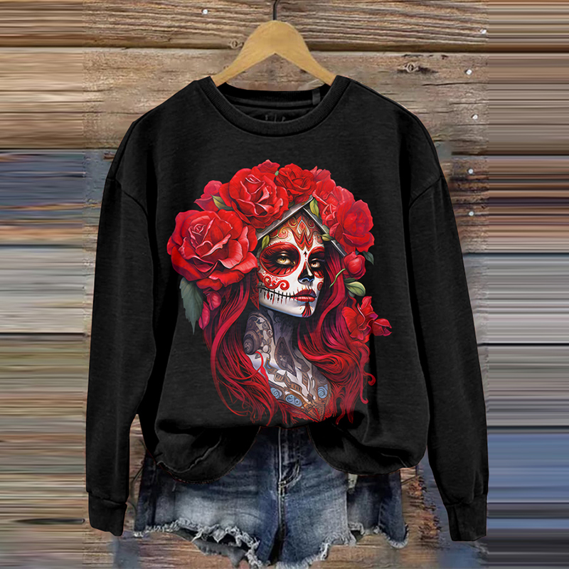 Mexican La Catrina Day Of The Dead Inspired Art Printed Sweatshirt