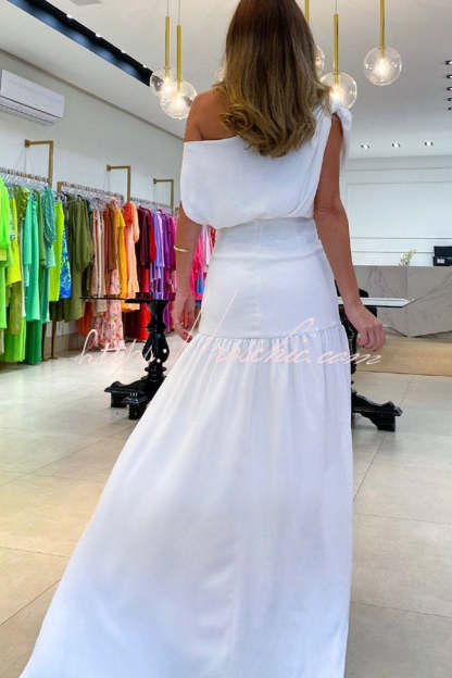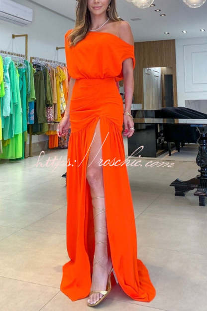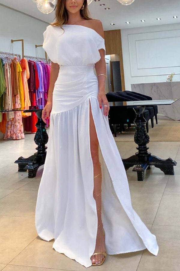 Midnight Chances One Shoulder Ruched Detail Slit Maxi Dress