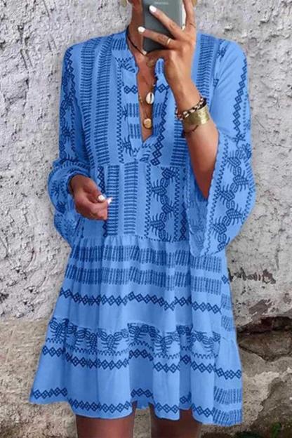 Print Flared Sleeve Stand Collar Dress