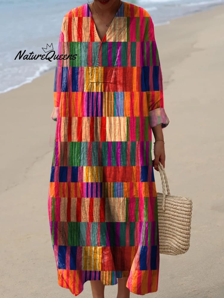 Modern Colorful Geometric Pattern Printed Women's Flowy Dress