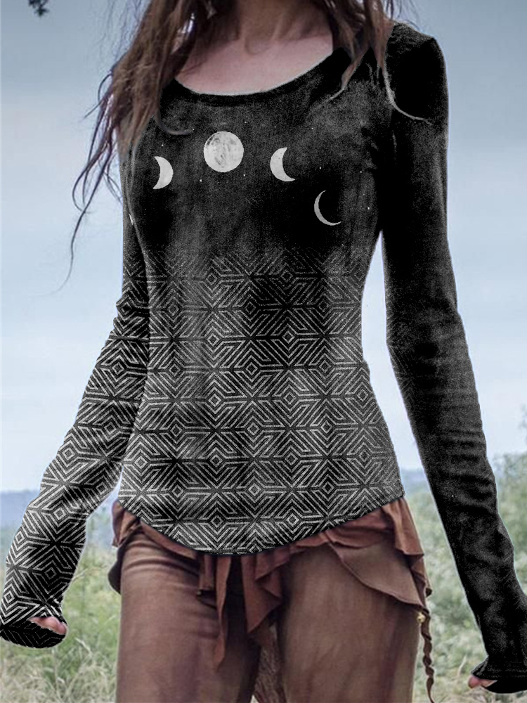 Moon Phase Sacred Geometry Washed T Shirt