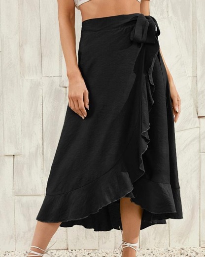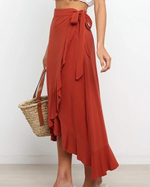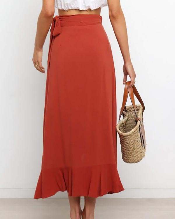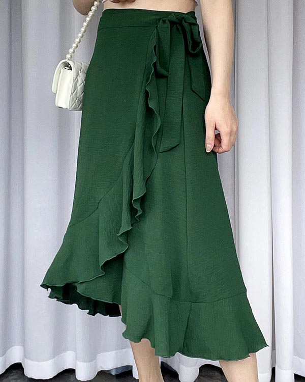 One Piece Strappy Long Skirt Irregular Solid Color Skirt