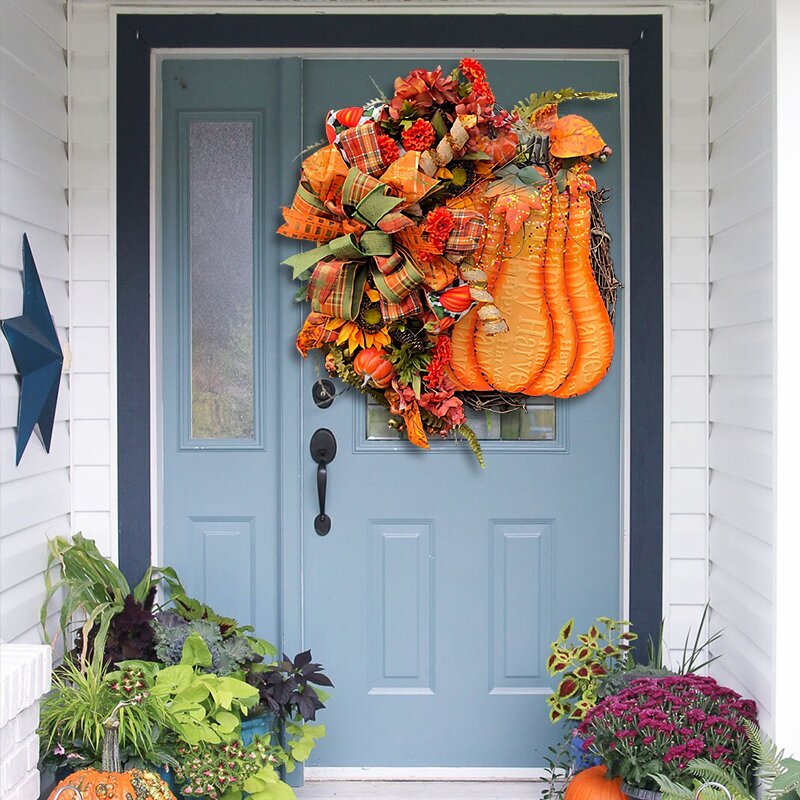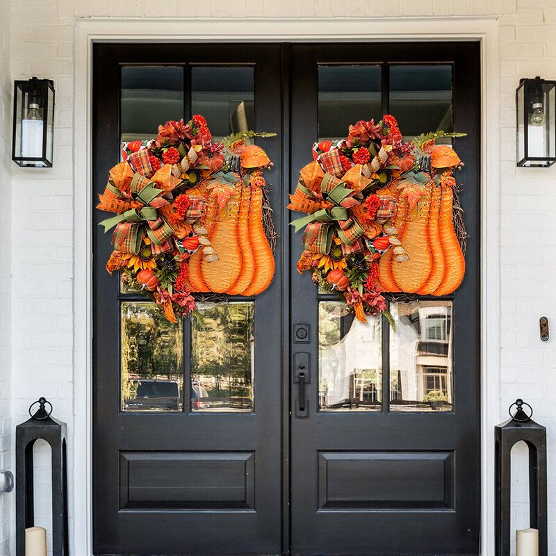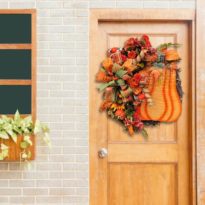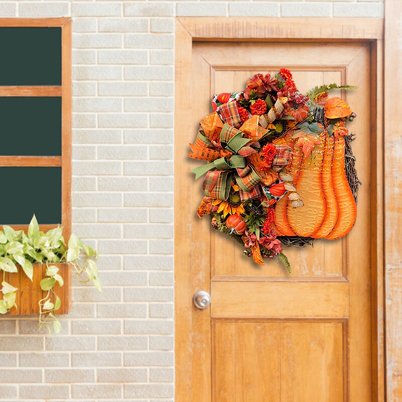 🌷Feature: Brand new design! The charm of big pumpkins, round vines, bows and green plants! Very suitable for all your home decoration needs.