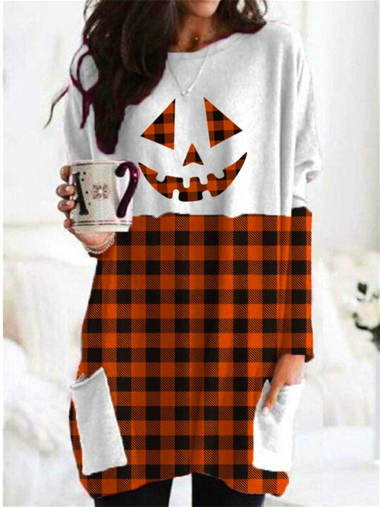 Orange Pliad Ghost Face Stitch Contrast Color T Shirt