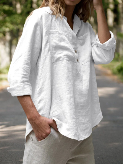 Patch Pockets Natural Linen Blouse