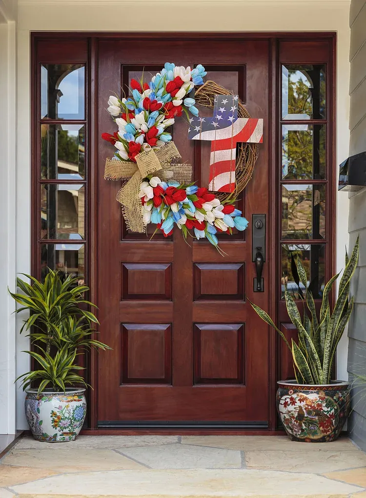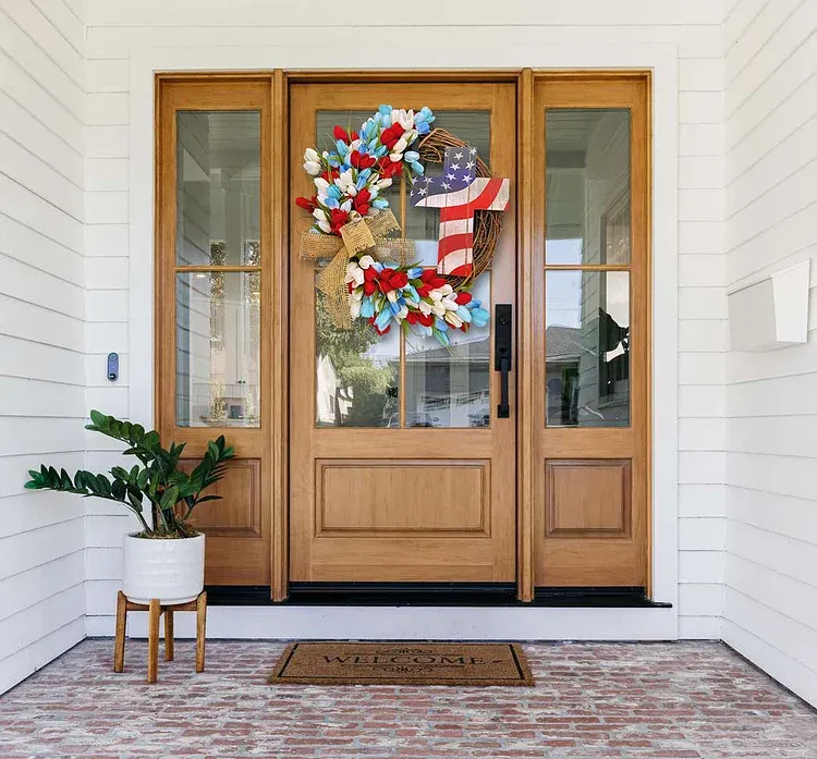 🌟🏠This patriotic independence wreath is the perfect way to show your American pride and love for our country!That embodies the Patriotic spirit in all of us. Whether you use this for Memorial Day, 4th of July or just everyday, this Americana design is sure to create quite a statement on your front door.
