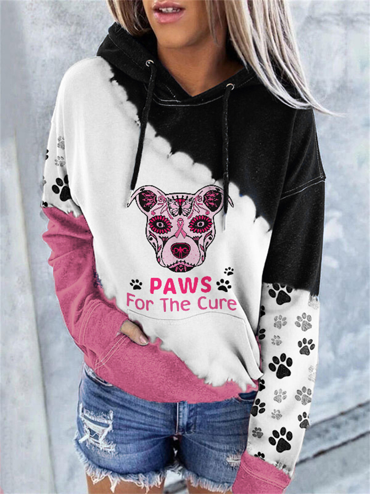 Pink Ribbon Dog Paw Colorblock Tie Dye Hoodie