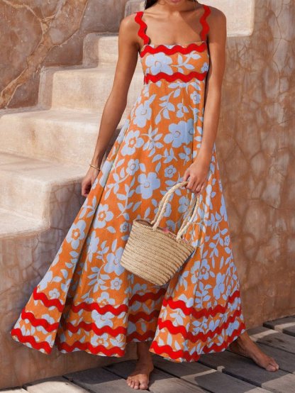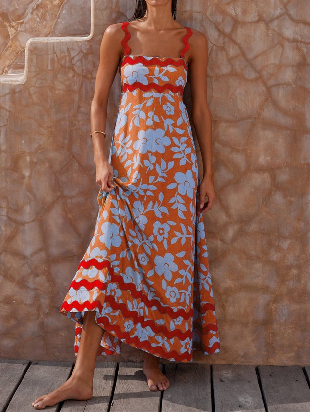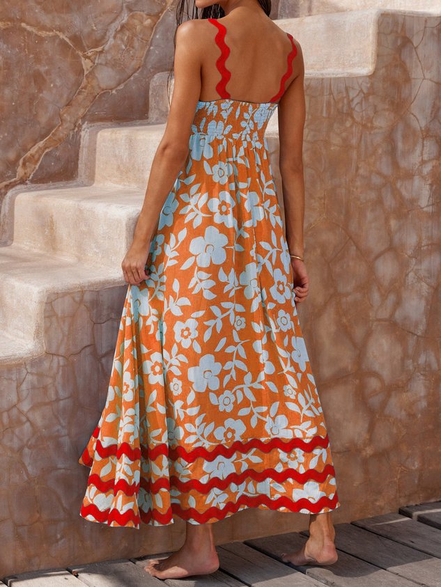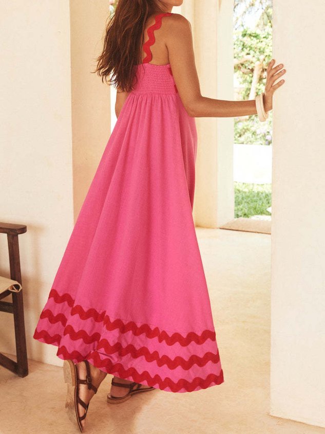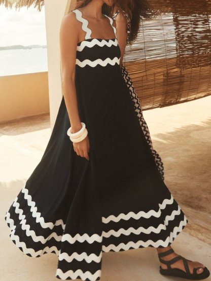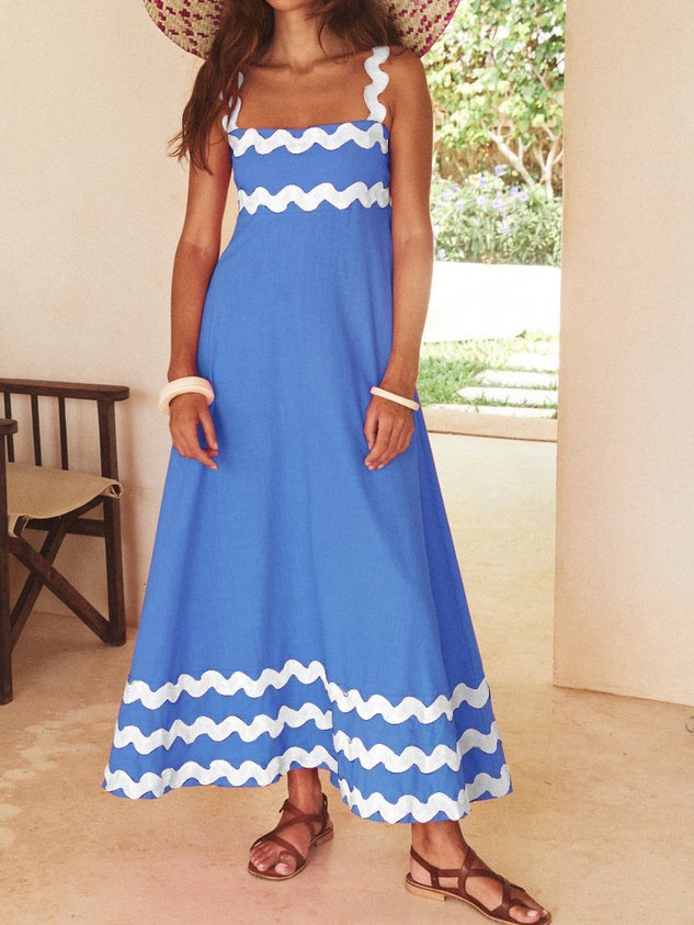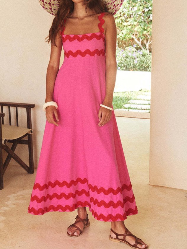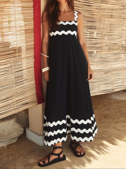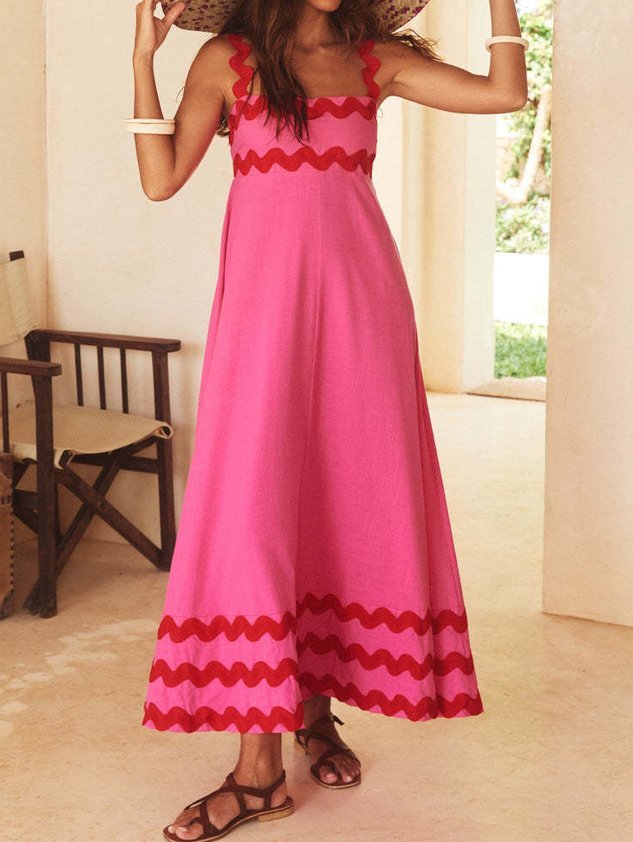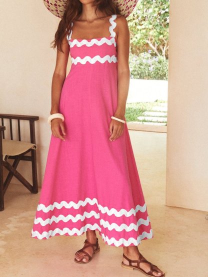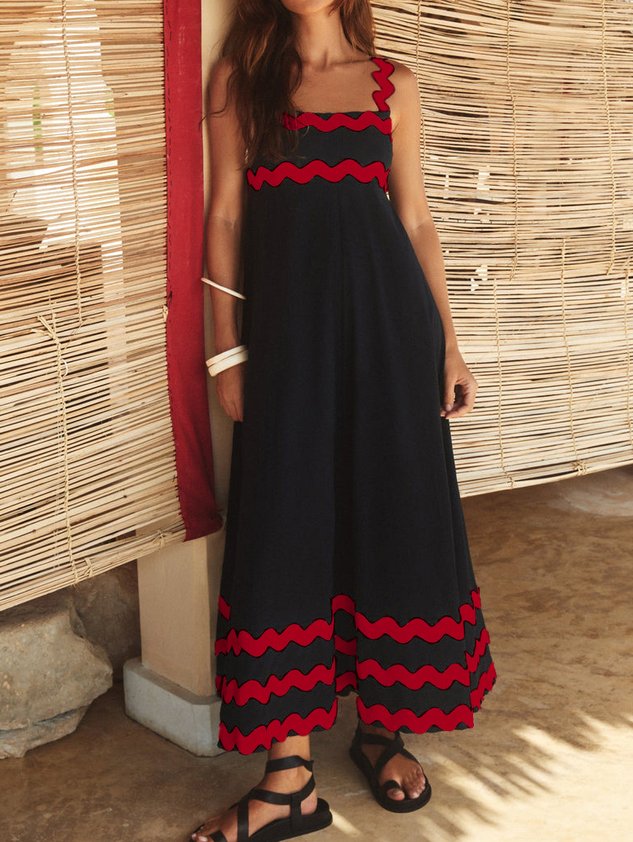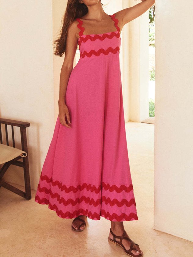 Plain Split Joint Simple Spaghetti Dress With No Belt