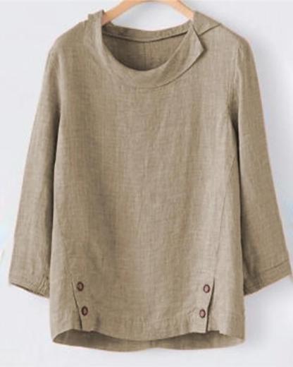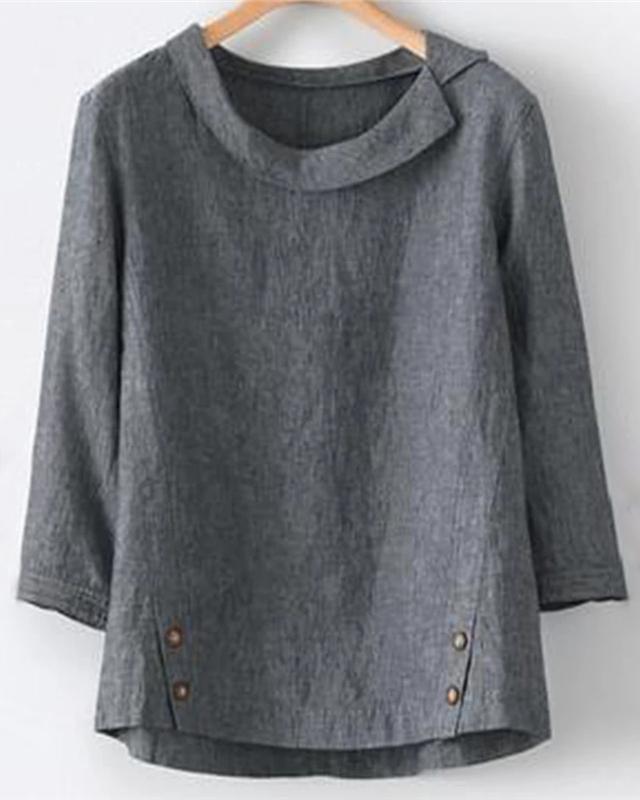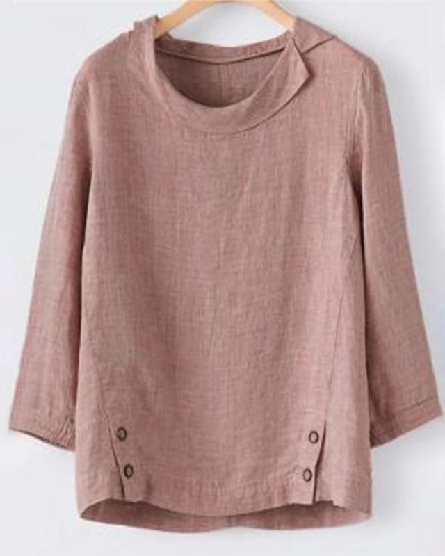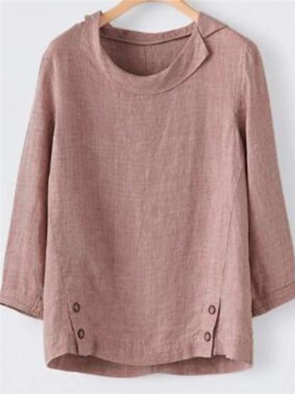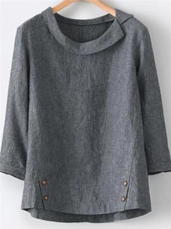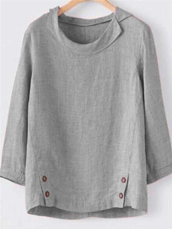 Plus Size Linen Solid Fall Daily Shift Women Blouse
