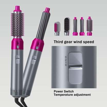 The hairdryer brush contains 5 replaceable brush head attachments, which can easily dry, straighten, curl, and volumize.