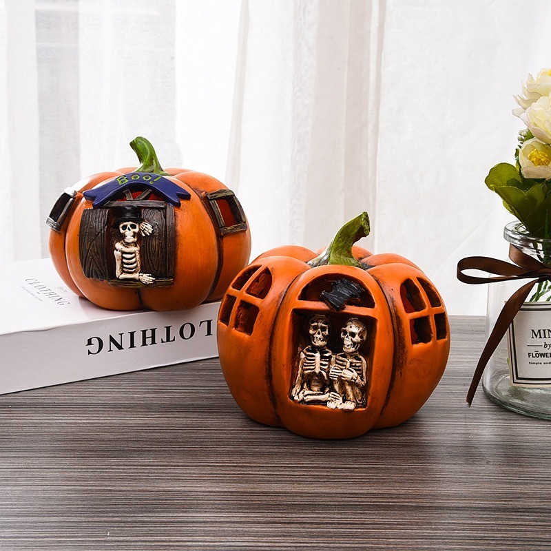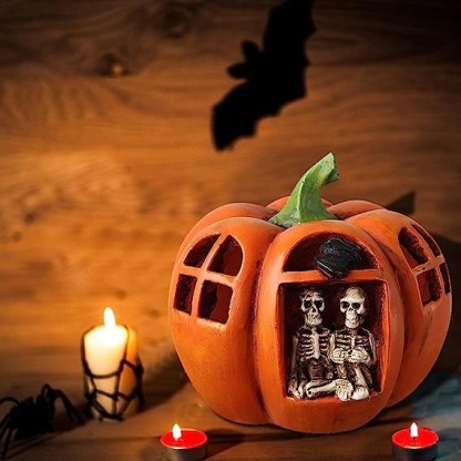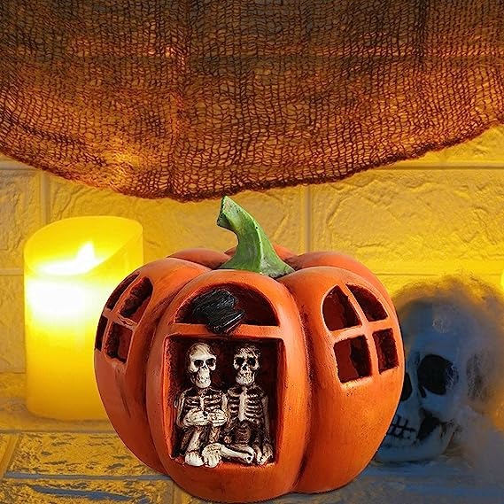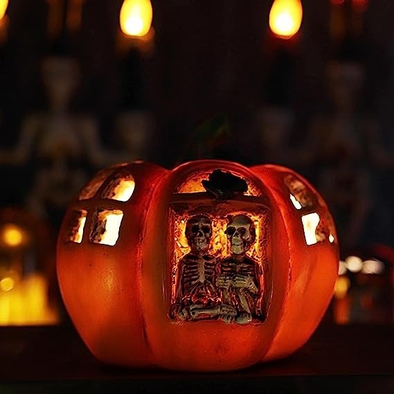 🎃The Pumpkin Ghost Lamp is made of high-quality resin material with safe, eco-friendly and shatterproof materials. The pumpkin blowing mold with orange coating makes it look like a real pumpkin.