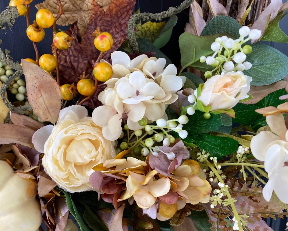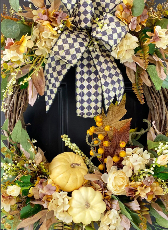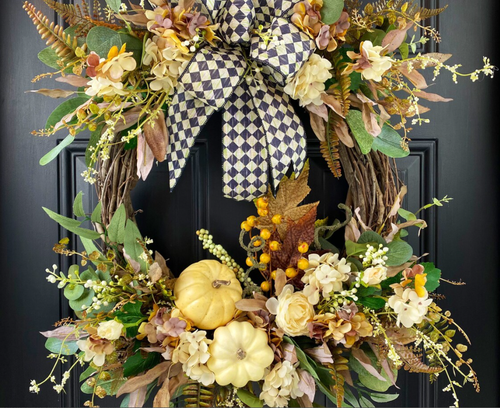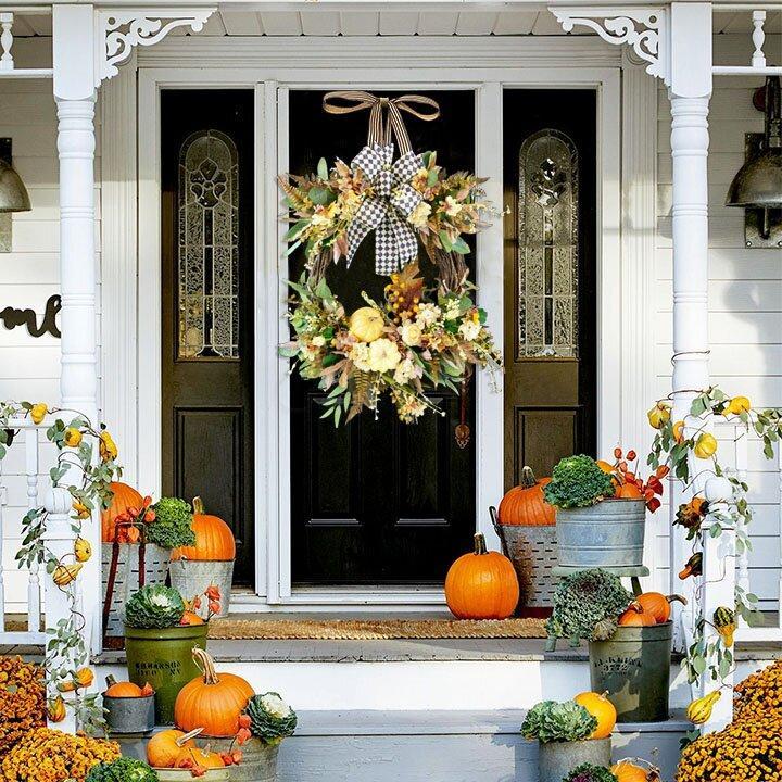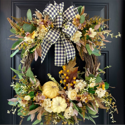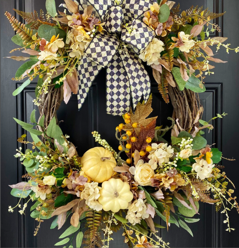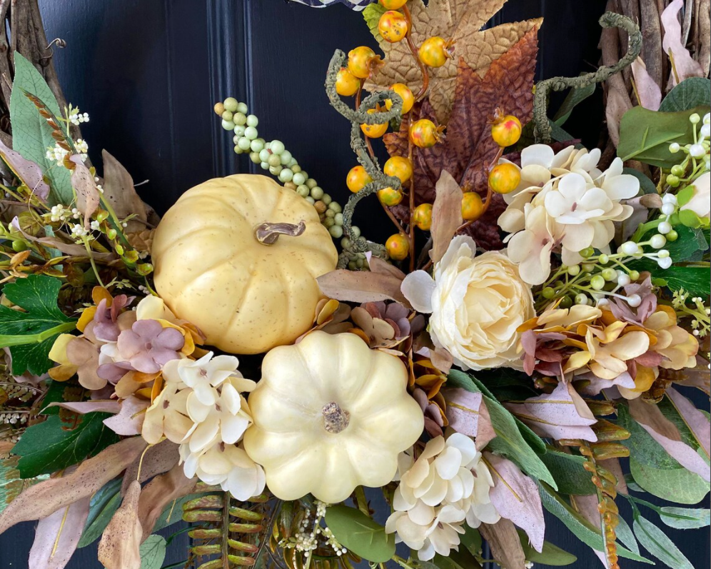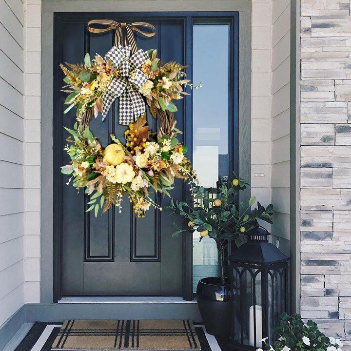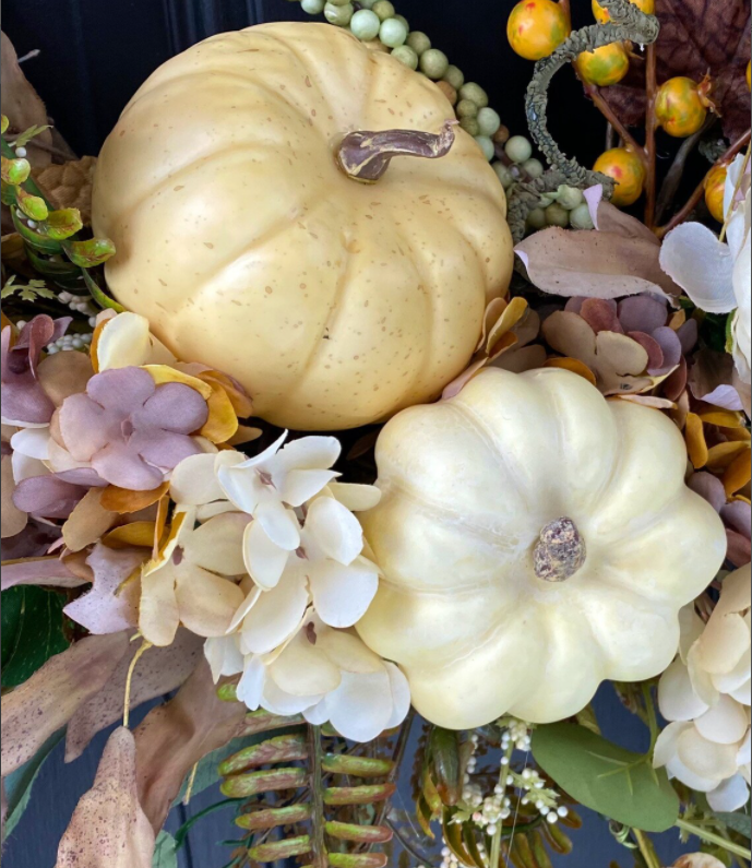 This white pumpkin farm wreath is so beautiful, I took it away and hung it on his door without even looking at my neighbor?