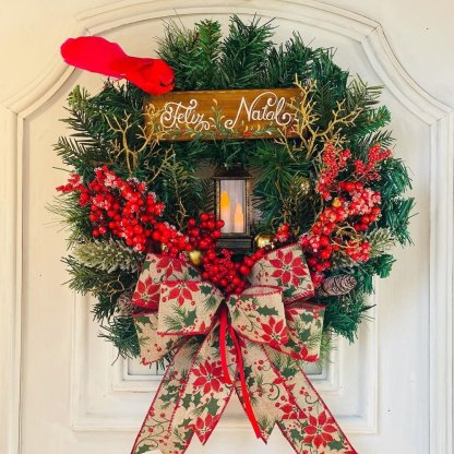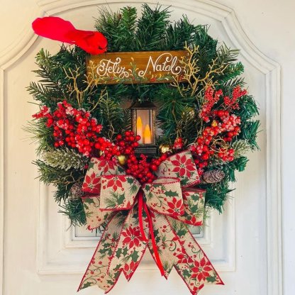 😍This is a perfect wreath on your front door for christmas or hang it anywhere inside your house ~ The contrast of red is matched with the flower and wheat bow decoration. The middle of the wreath is decorated with a small LED light. It will be very beautiful when hung at the door, adding a touch of light in the winter night. 2022 is coming soon, and we wish you a better and better life. Let us welcome the new life in the future and decorate your home! 🎅 Our products will add a warm, high-quality guarantee to your home, bright colors, and you will be in the mood to make an appointment when you look at it.