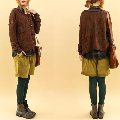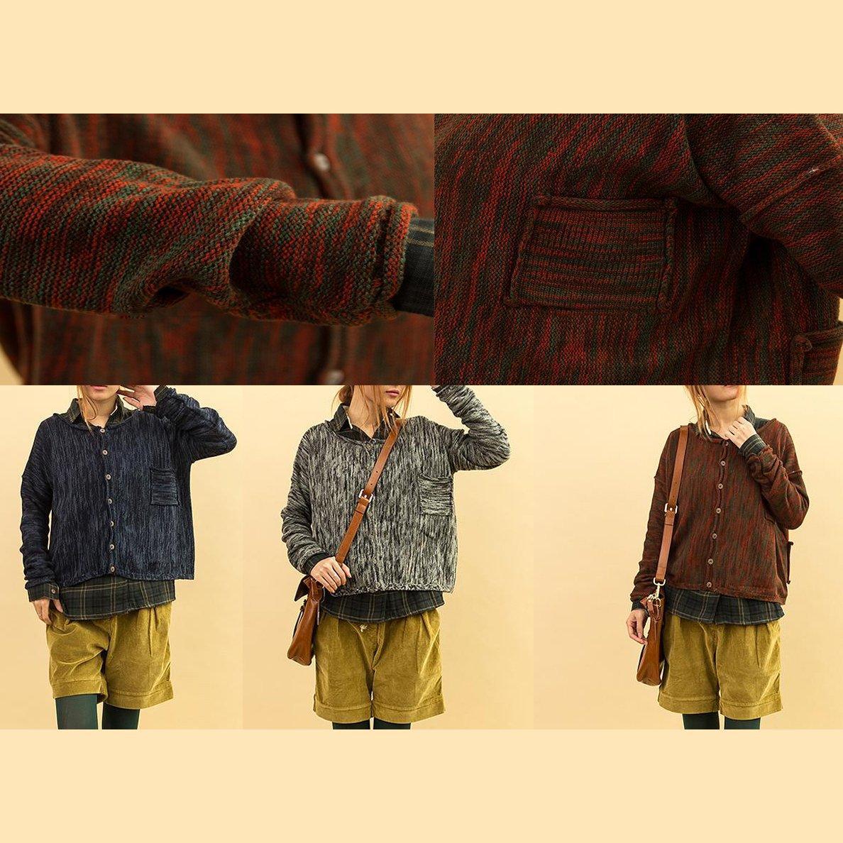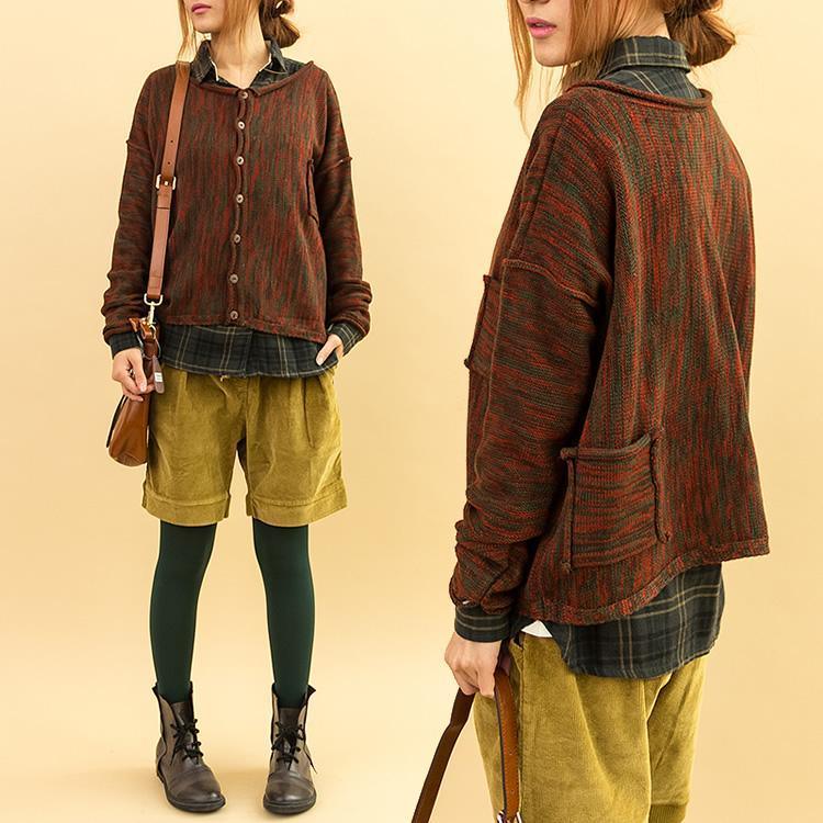 Red sweaters back pocket knitted cardigan short sweater coat long sleeve