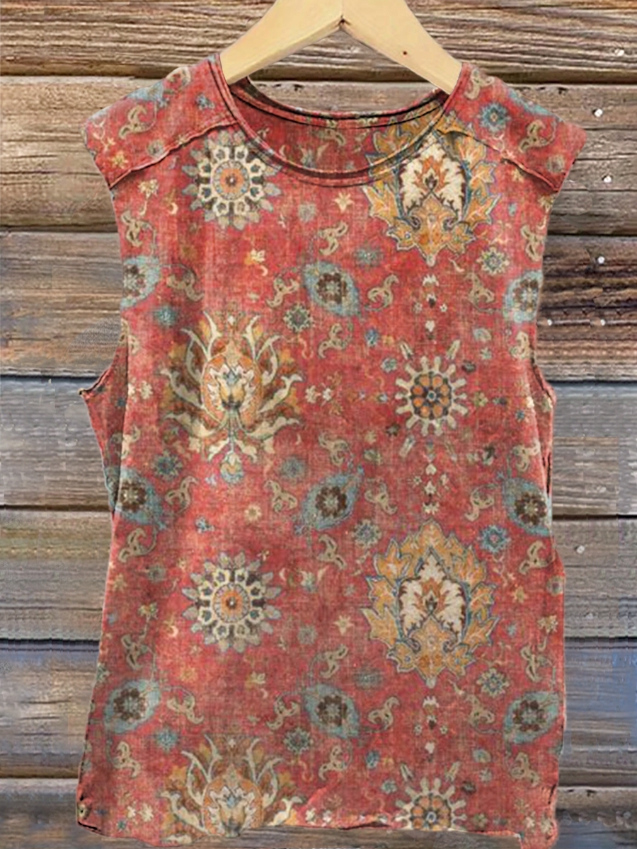 Retro Ethnic Totem Print 100% Cotton Casual Unisex Tank Top