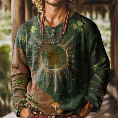 Retro Green ethnic pattern Frog Vintage Print Casual 100% Cotton Shirt