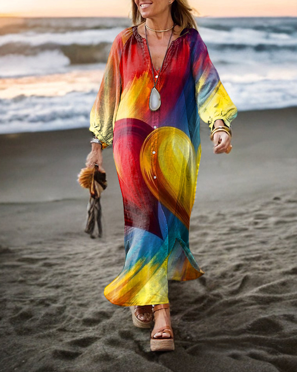Retro Heart Colored Long Sleeve Cardigan Dress