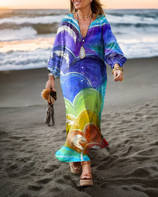 Retro Heart Colored Long Sleeve Cardigan Dress