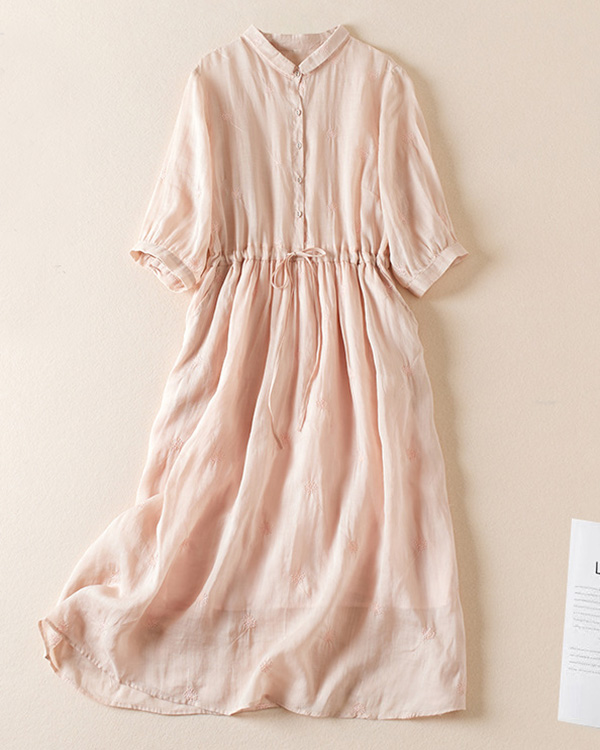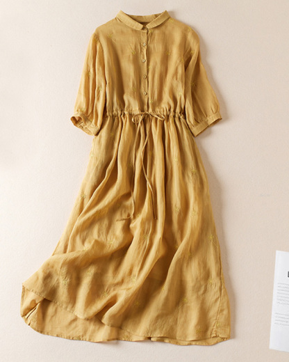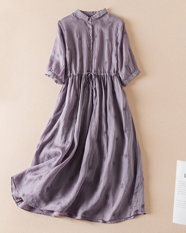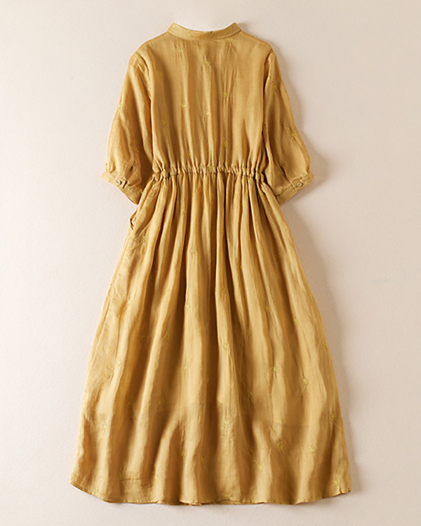 Retro Lapel Waist Short Sleeve Midi Dress