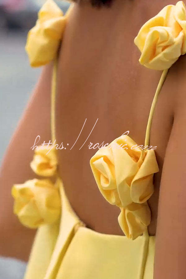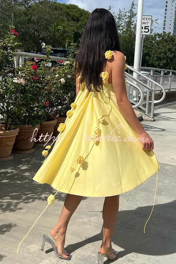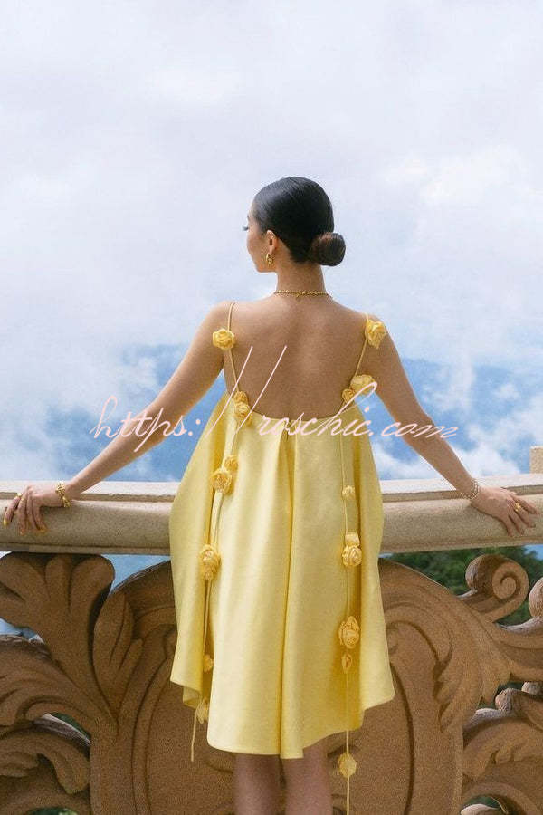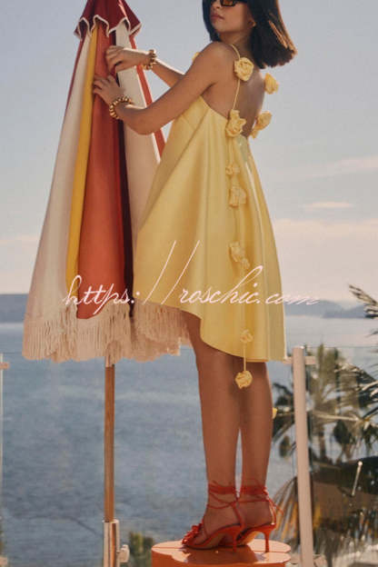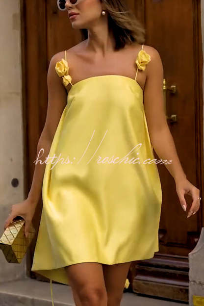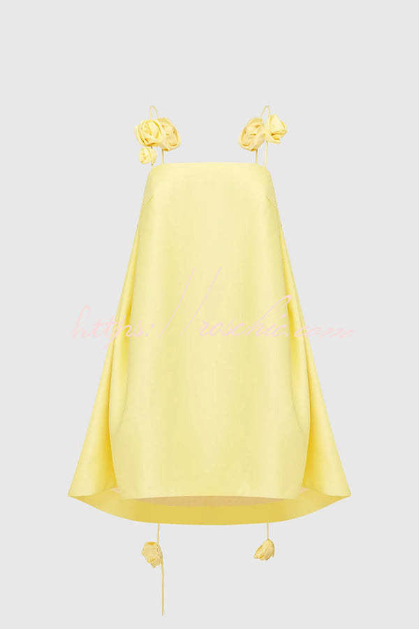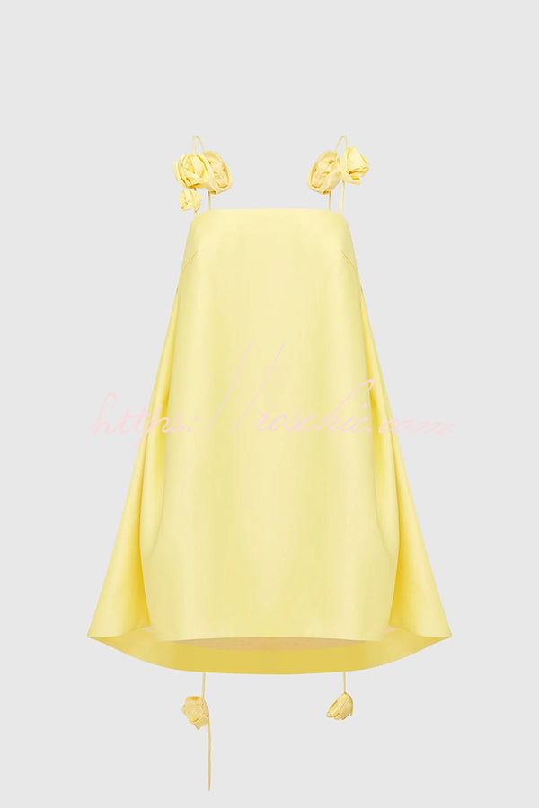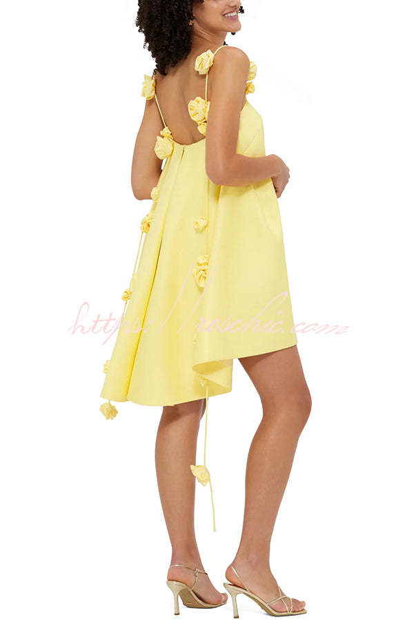 Playful and Flattering Silhouette 3D Rose Drape Straps A-line Mini Dress