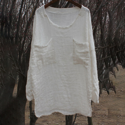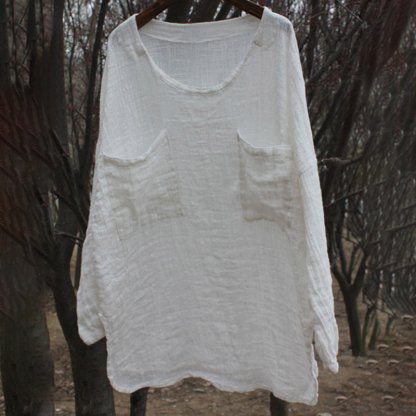 Round Neck Pocket Comfy Casual Shirt