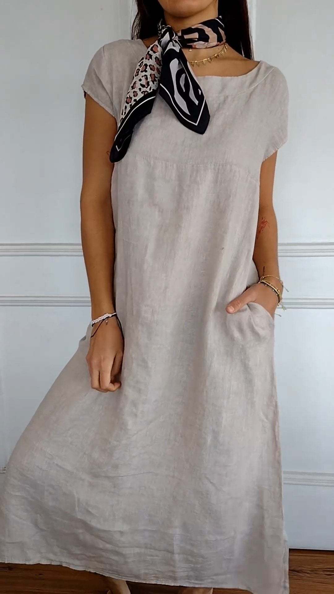 Round Neck Short Sleeve Pocket Dress