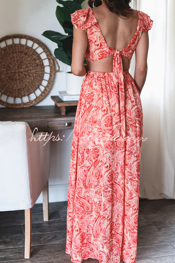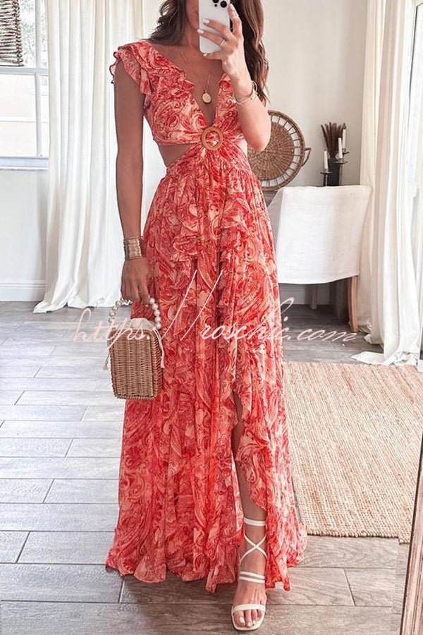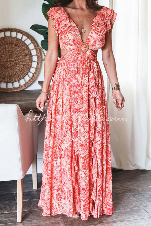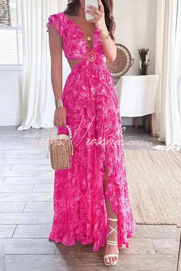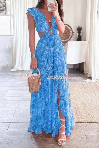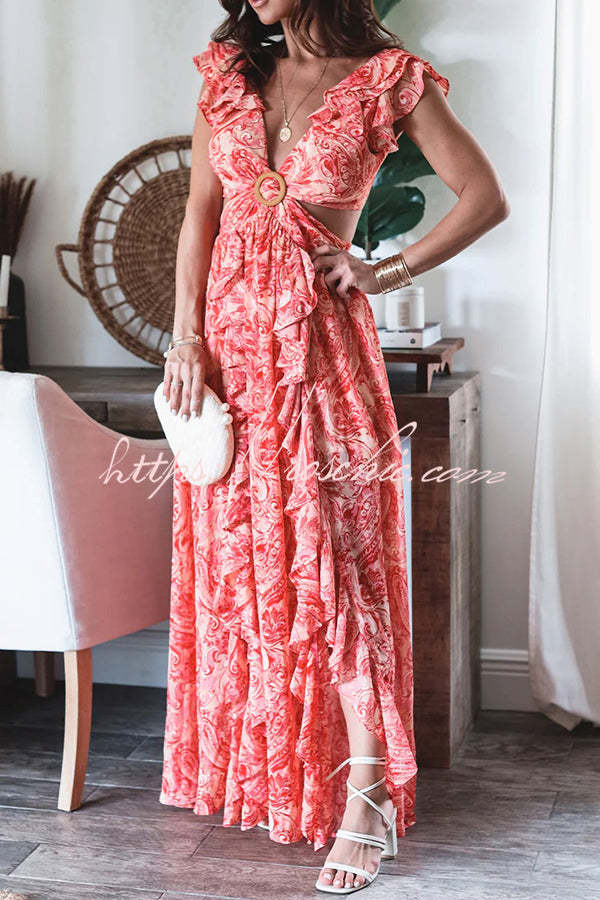 Boldest Bloom Floral Printed Ruffle Sleeve Cutout Maxi Dress