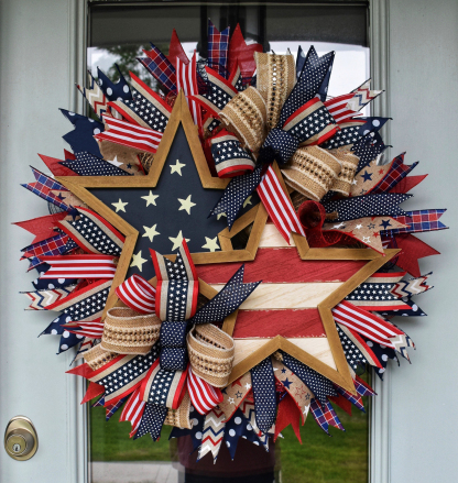 🌟This beautiful 4th Of July Wreath is sure to put a smile on the faces of your visitors, and it can be sent to you now! 🌟