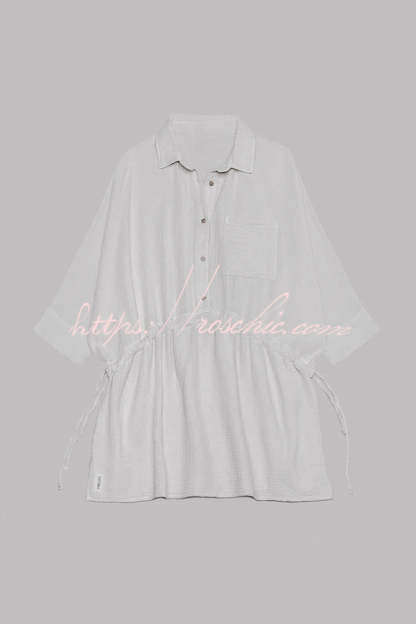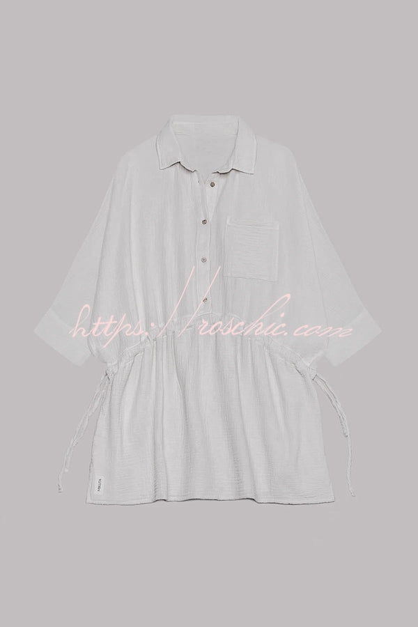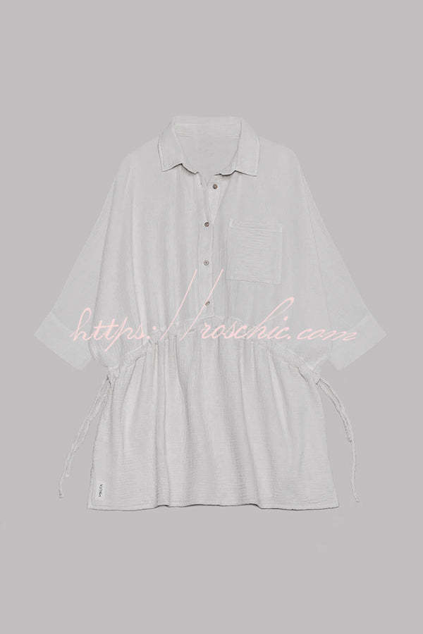 Sachin Linen Blend Adjustable Bands Pocket Oversized Shirt Mini Dress