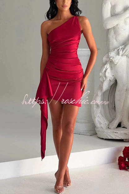 Sexy Slim Fit Backless One-shoulder Satin Mini Dress