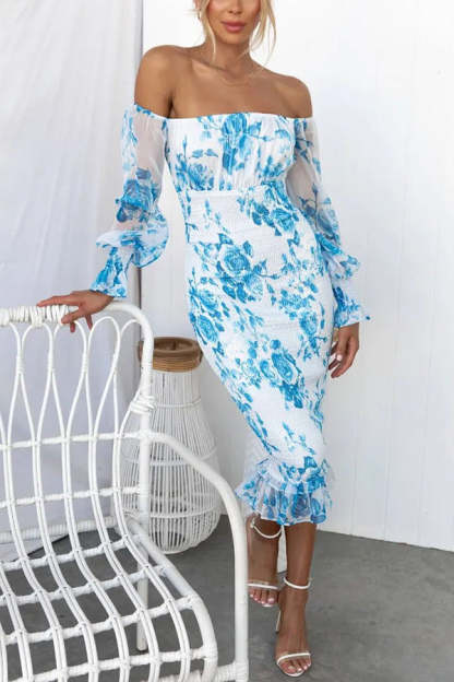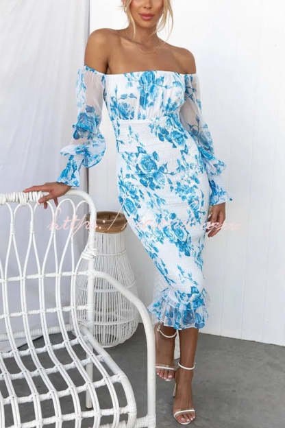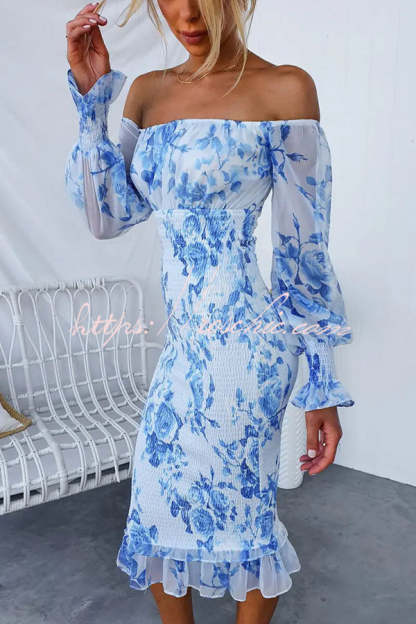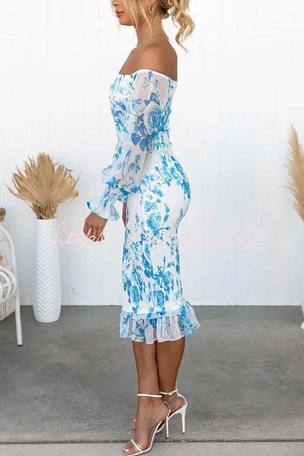 Shine Bright Floral Off Shoulder Smocked Waist Midi Dress