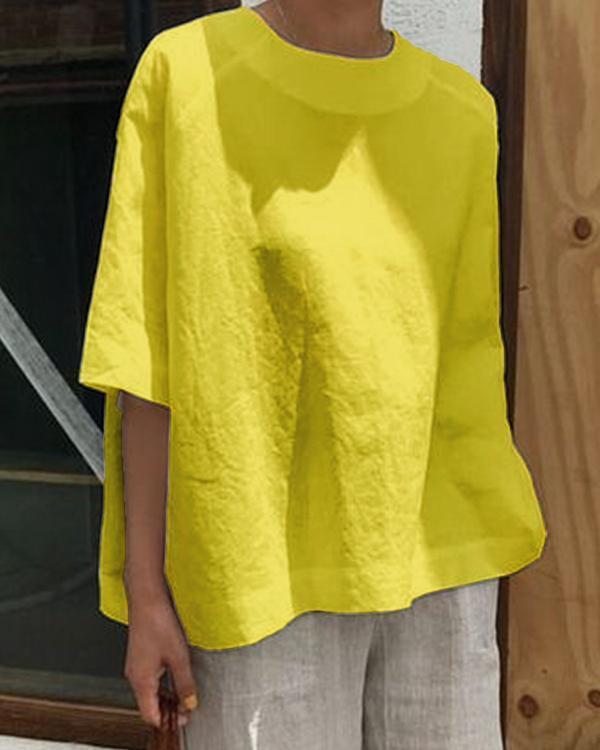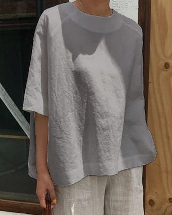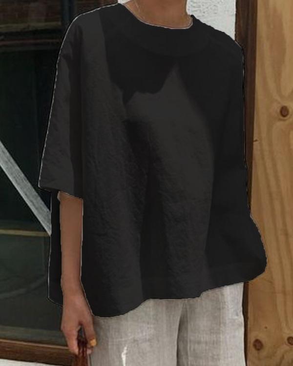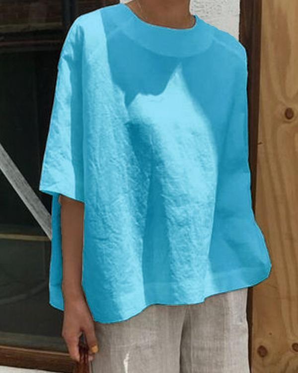 Short Sleeve Crew Neck Casual Summer Women Holiday Blouse