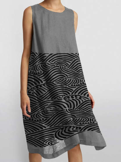 Step into style with the Sleeveless Midi Dress. This knee-length dress features a unique wave pattern on the lower half, perfect for casual outings or relaxed summer days. The sleeveless design and round neckline offer a breezy fit, while the lightweight fabric ensures all-day comfort. Don’t wait—add this artistic piece to your wardrobe for a chic, effortless look.