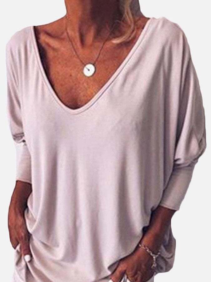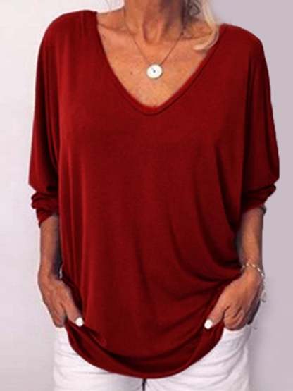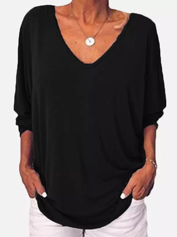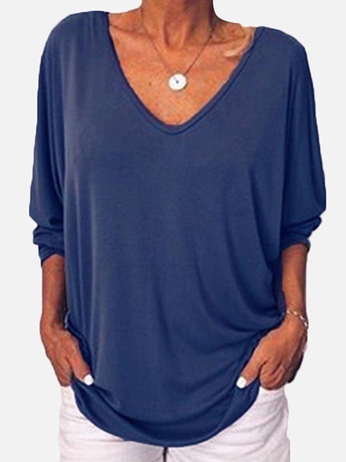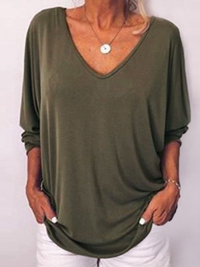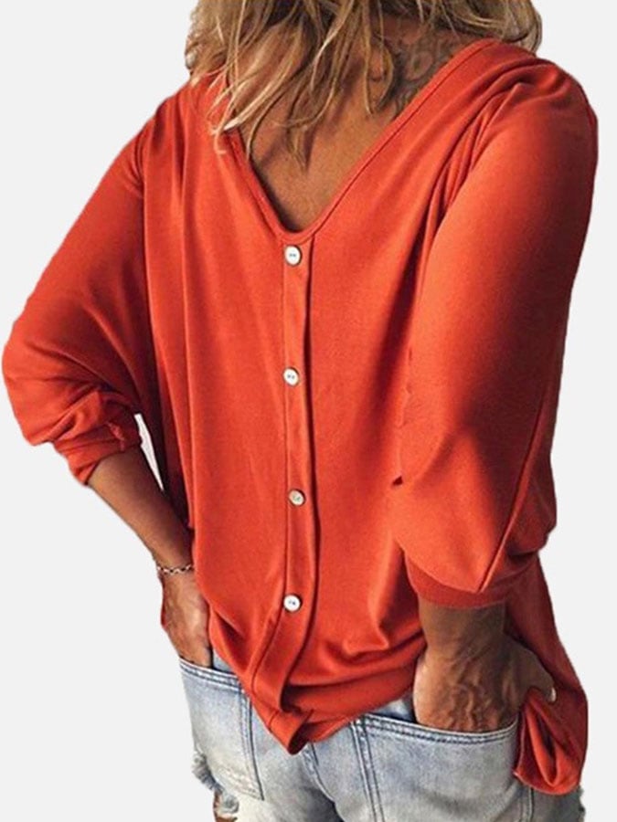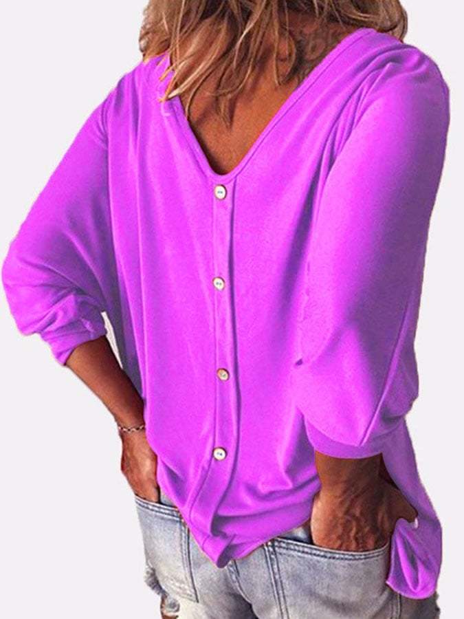 Solid Color Back Button Long Sleeve Casual T-Shirt