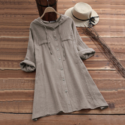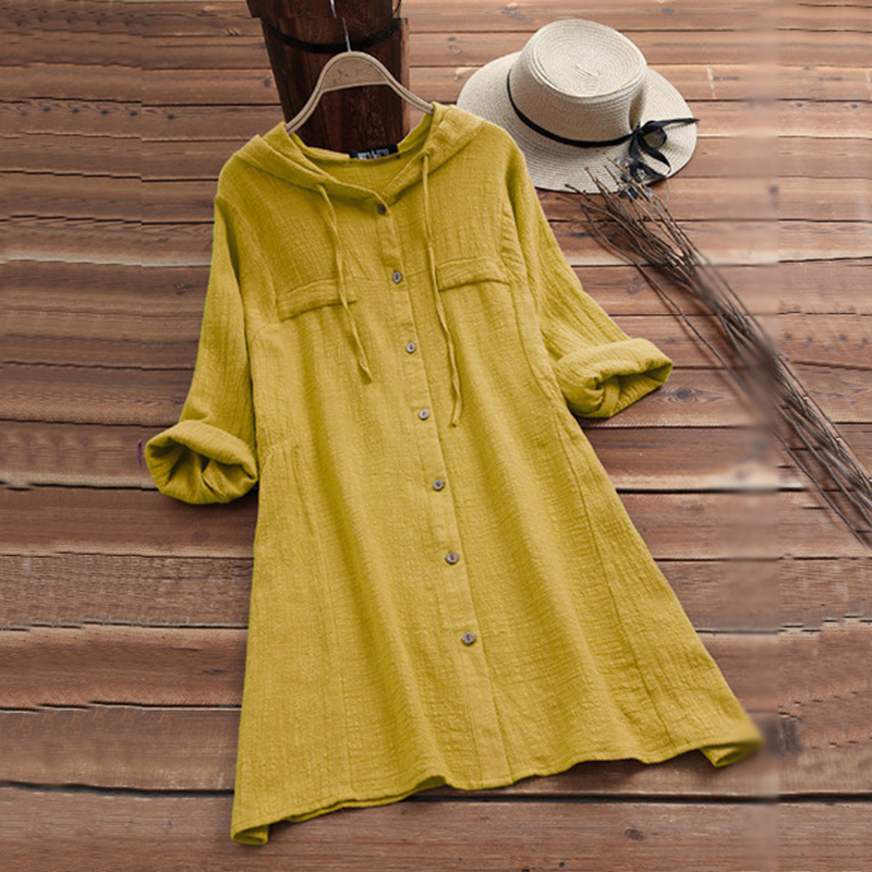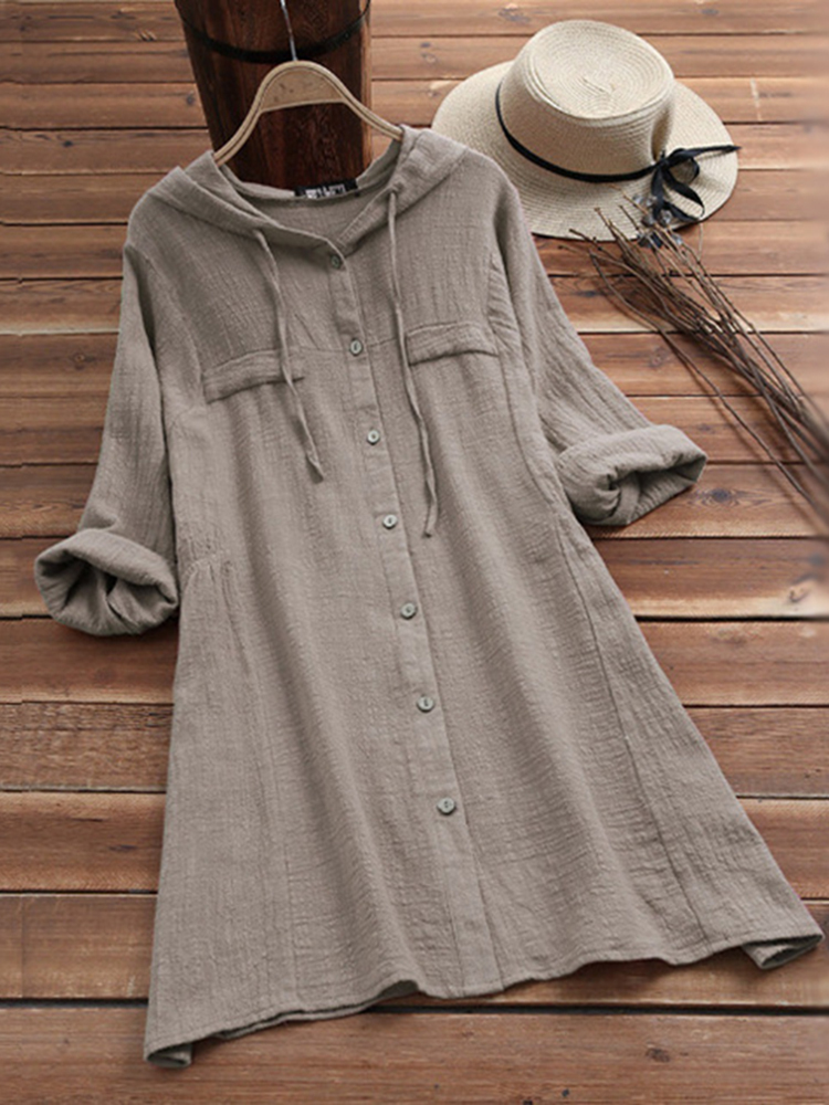Solid Color Button Down Long Sleeved Shirt Midi Dress