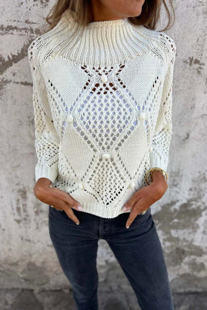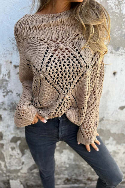 Solid Color Hollow Round Neck Casual Loose Knitted Sweater