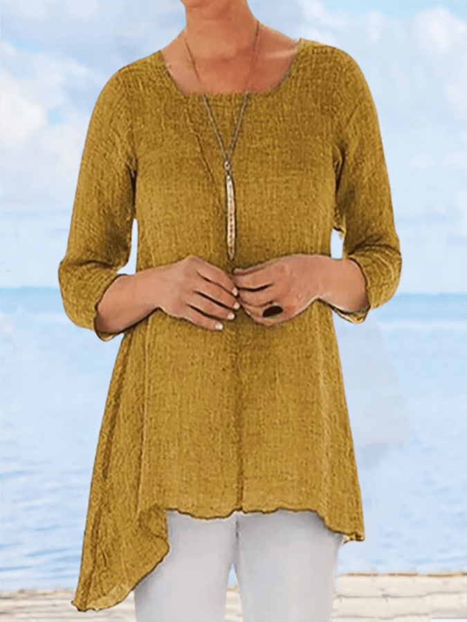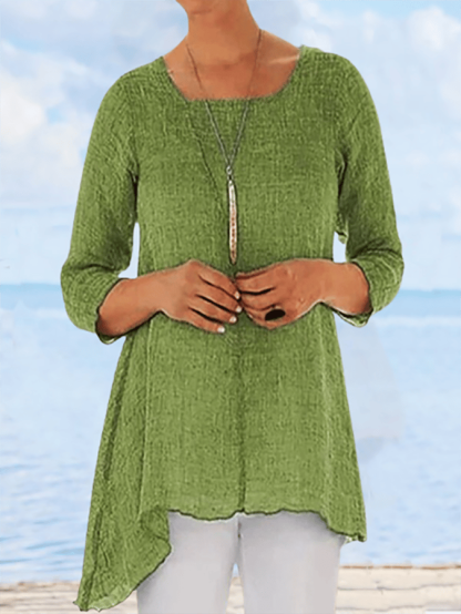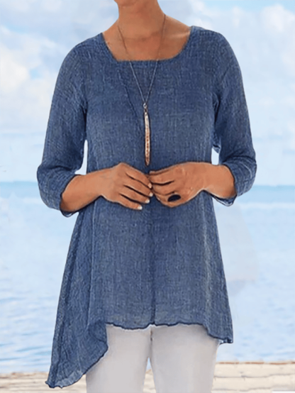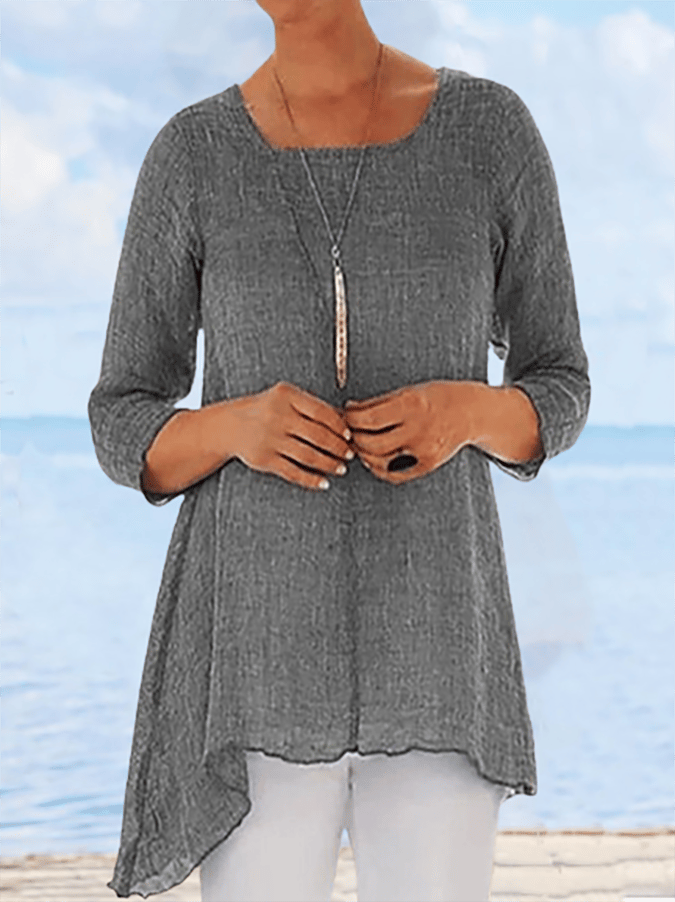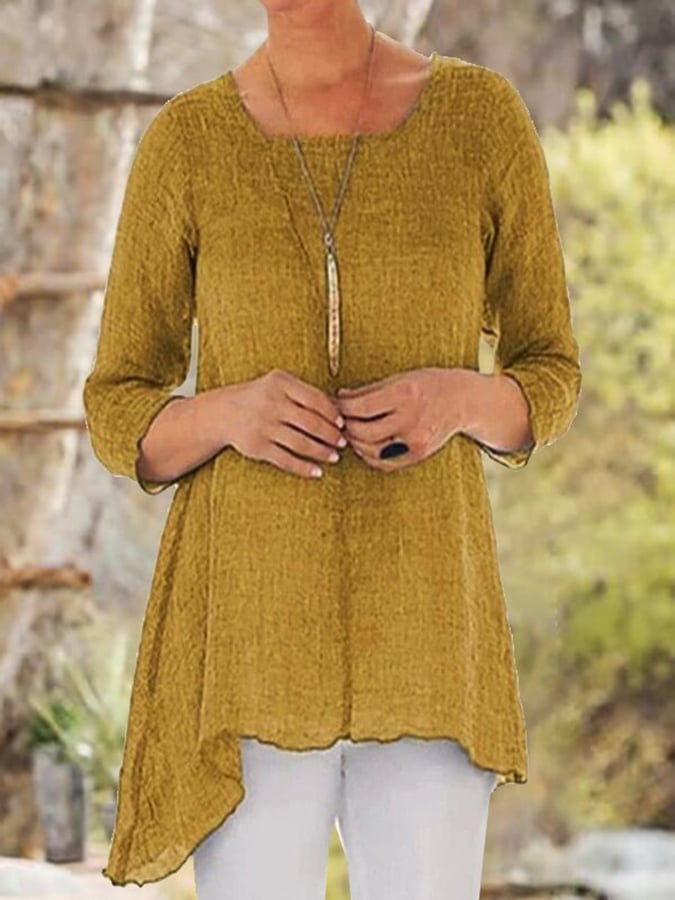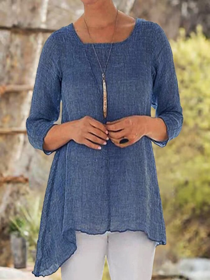 Solid Color Irregular Hem Casual T-Shirt