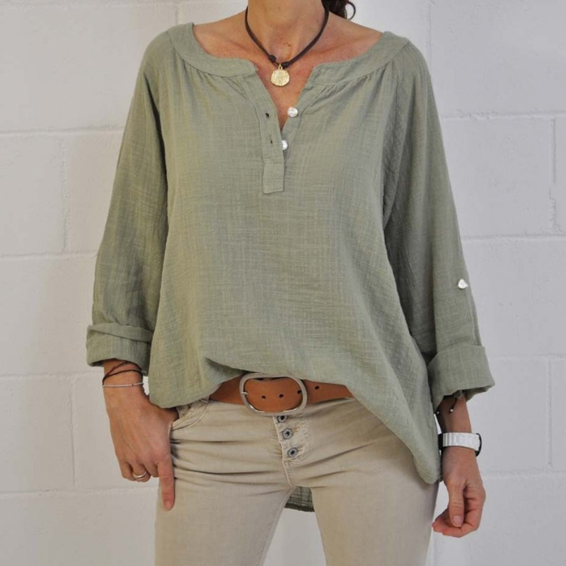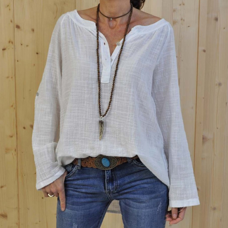 Solid Color V-Neck Long Sleeved Loose Blouse