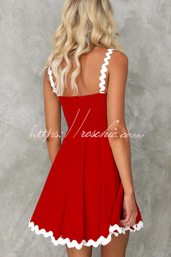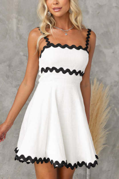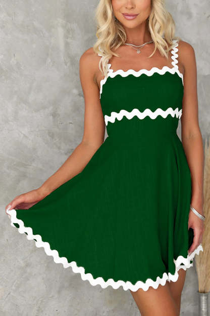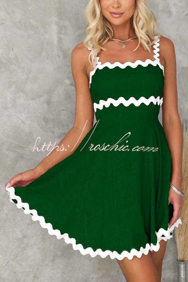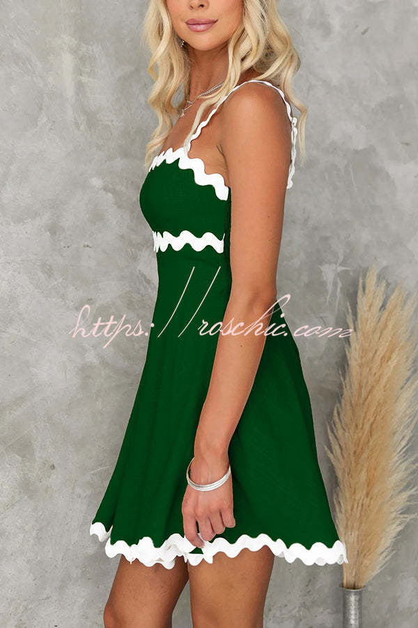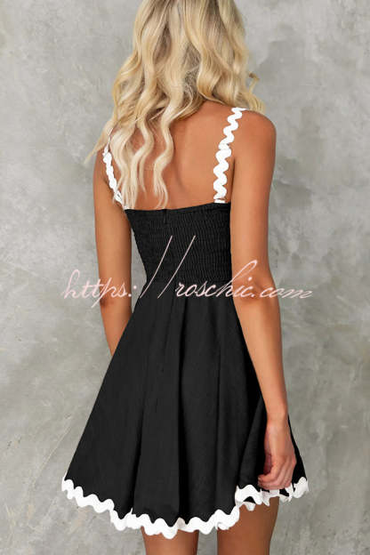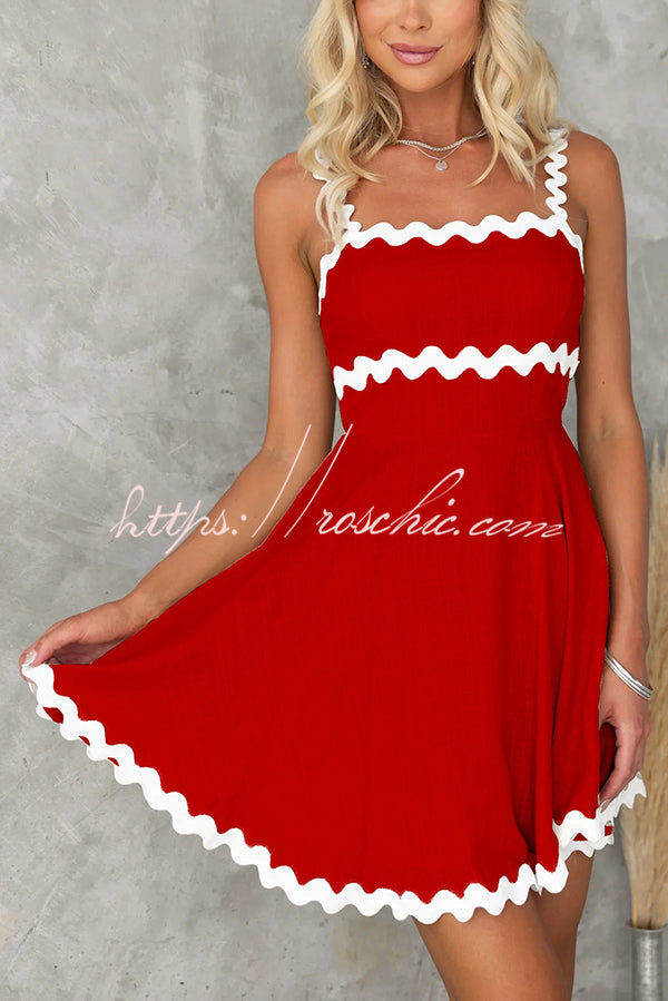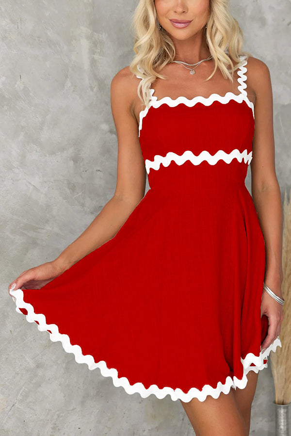 Aimie Solid Color Wavy Lace Sexy Suspender Mini Dress