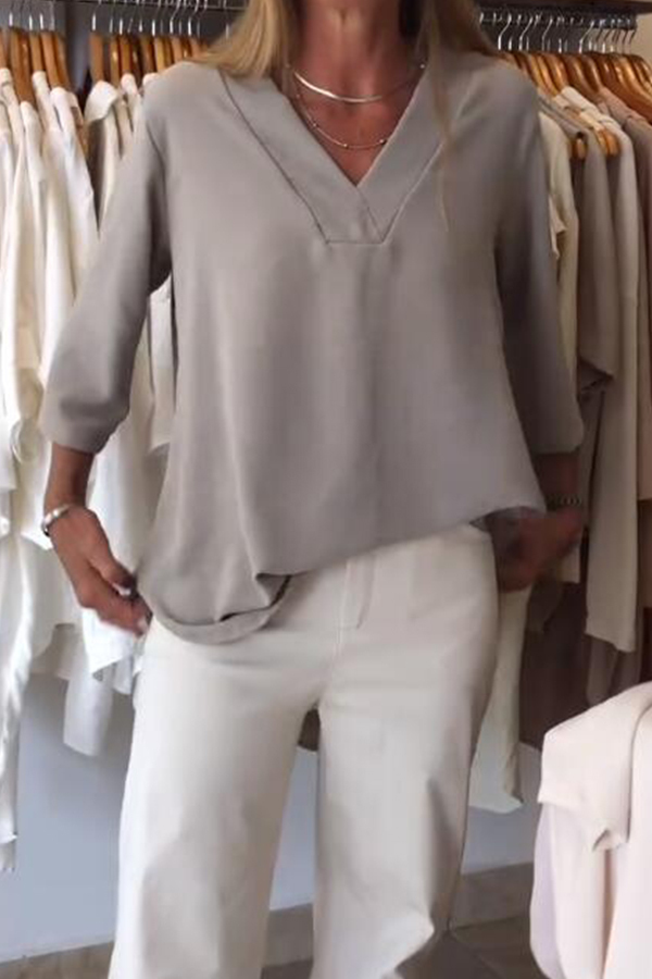 Solid Print Button Decor Long Sleeve Stylish Women Shirt