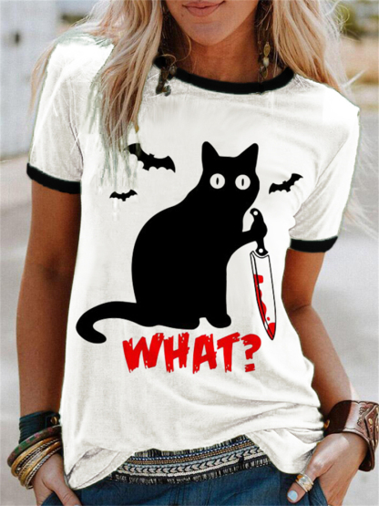 Spooky Black Cat With Bloody Knife T Shirt